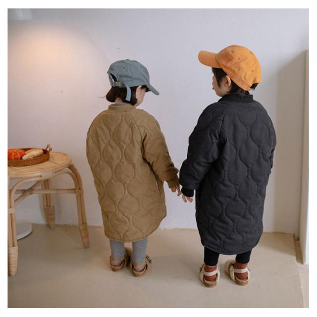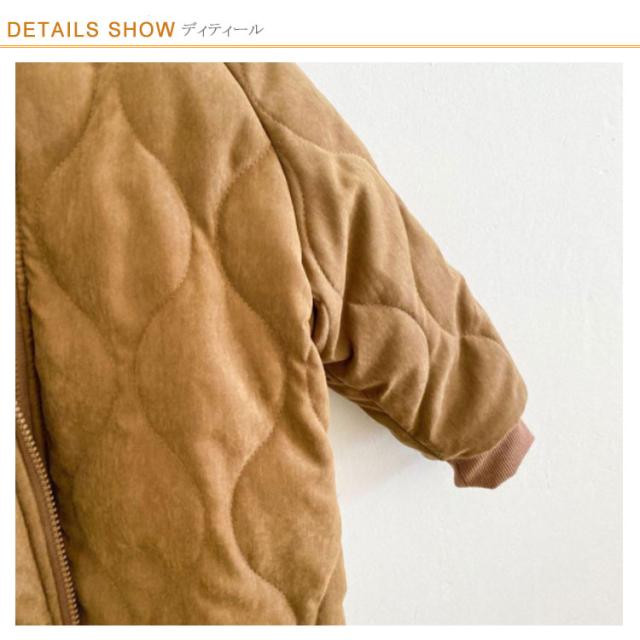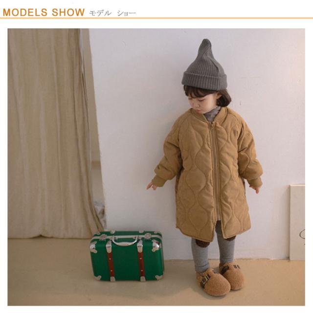 | 90-140cm!暖かく、軽い着心地のキルティングジャケットです。 中綿入りで、軽量ながらもしっかりと体を暖めてくれます。 裏フリース仕様でさらに暖かさUP! 身幅にややゆとりもあるので動きやすいです。 膝まであるロング丈ですっぽりと防寒が叶います。 一枚でも十分あったか、さらに着もめるからどんな寒い日も安心。 シンプルなデザインはもちろん、防寒・保温性も抜群で、お出かけ・通園・通学のピッタリ、防寒・保温アウターが大人気です。 | |
