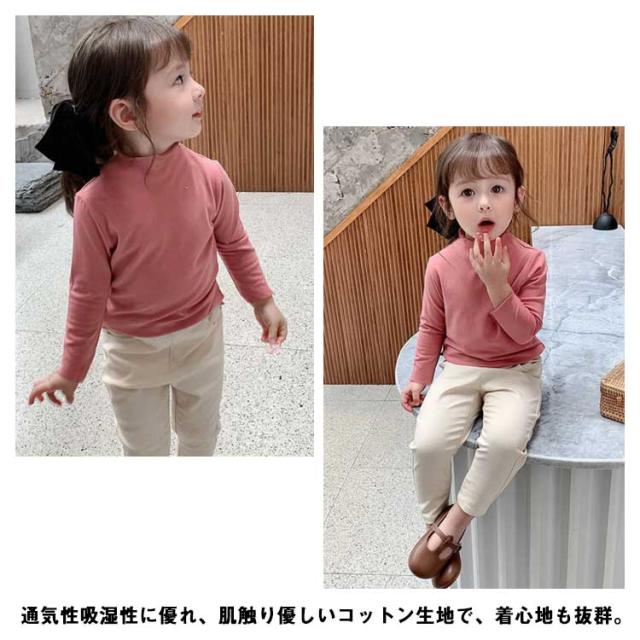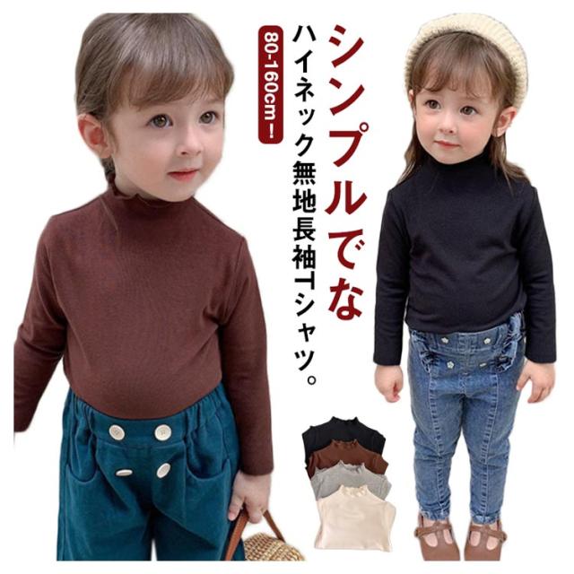 子供服 ハイネック Tシャツ キッズ 長袖 tシャツ カットソー 女の子 子ども ベビー インナーtシャツ プルオーバー シンプル 無地 トップス 重ね着 レイヤード 無地 ガールズ ストレッチ カジュアル 通園 通学 春 秋 冬 綿 コットン 送料無料 80-160cm