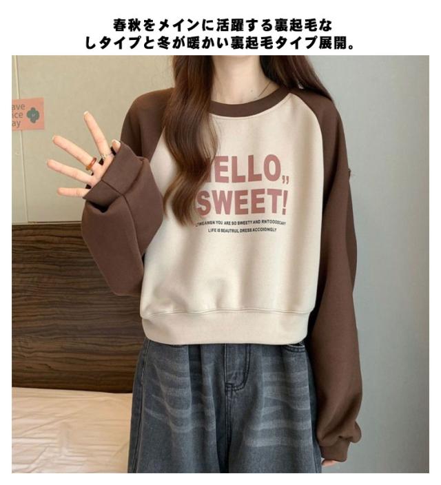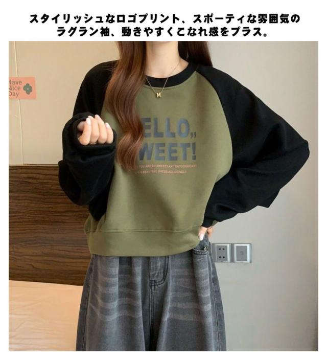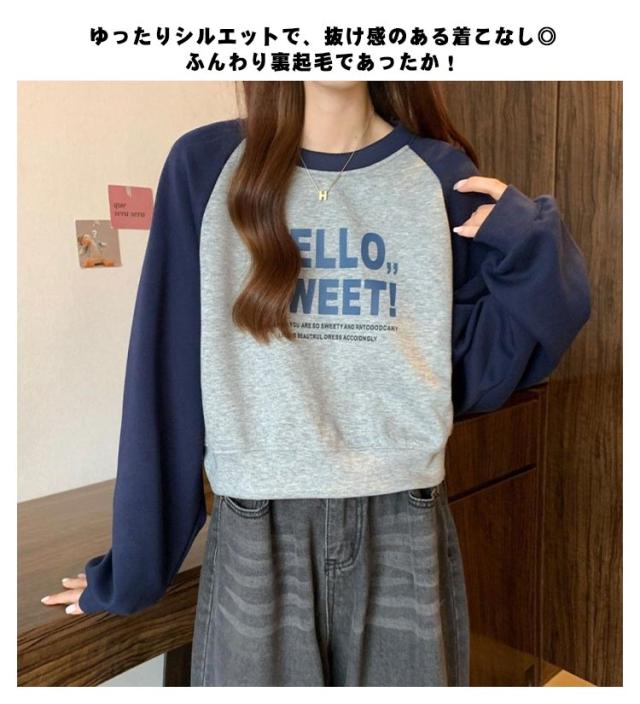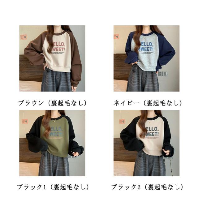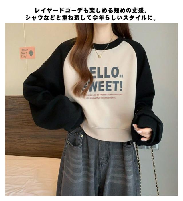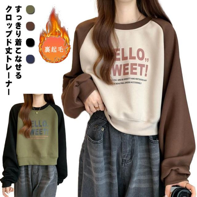 ショート丈 トレーナー 裏起毛 薄手 長袖 スウェット トップス オーバーサイズ レディース 短め カットソー クロップド丈スウェット ラグランスリーブ プルオーバー スエット 冬服 春秋 ロゴ 温かい トップス Tシャツ ルームウェア 韓国ファッション おしゃれ