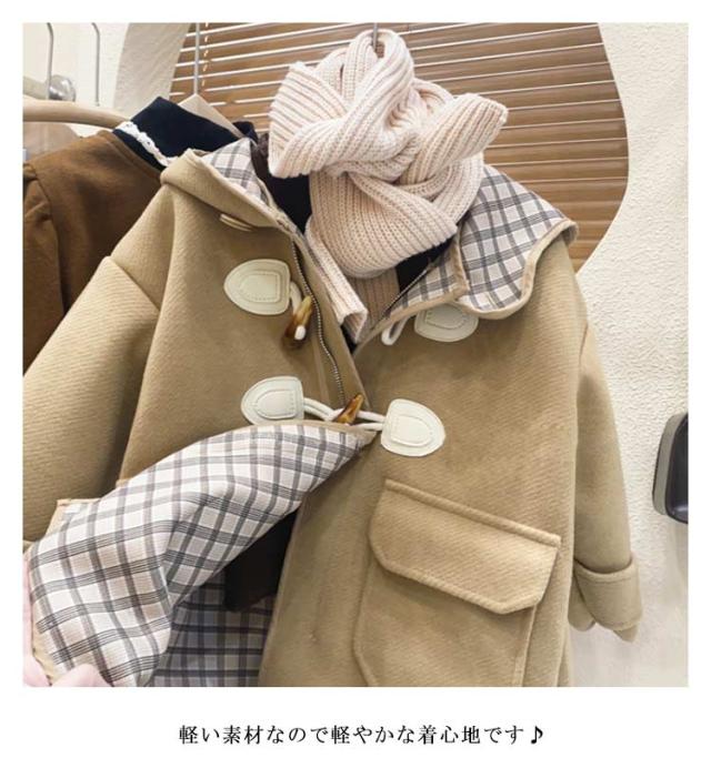 ダッフルコート キッズ ボアコート 韓国 子供服 チェック柄裏地 子供服 女の子 男の子 フード付きコート 暖かい 子供コート 防寒 ジャケット 秋 冬コート キッズコート キッズ服 ジュニア アウター カジュア 防寒 春秋 キッズ 可愛い
