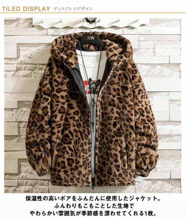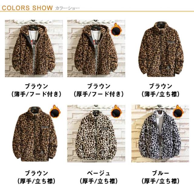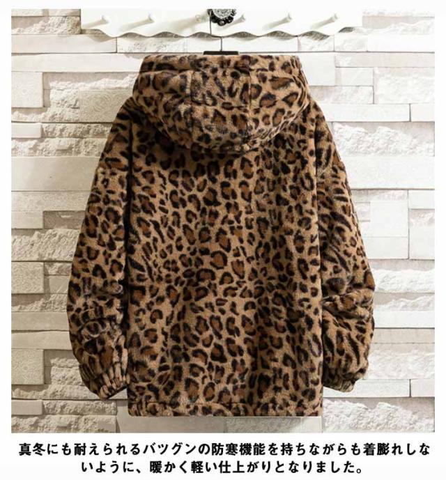 ジャケット フード付き メンズ ヒョウ柄 ボアジャケット レオパード柄 厚手 中綿入り ブルゾン 立ち襟 スタンドカラー パーカー ボアコート ジップアップブルゾン ムートンジャケット 羽織 アウター 防寒 もこもこ 暖かい 秋冬 おしゃれ 韓国 BF 原宿系 レディース