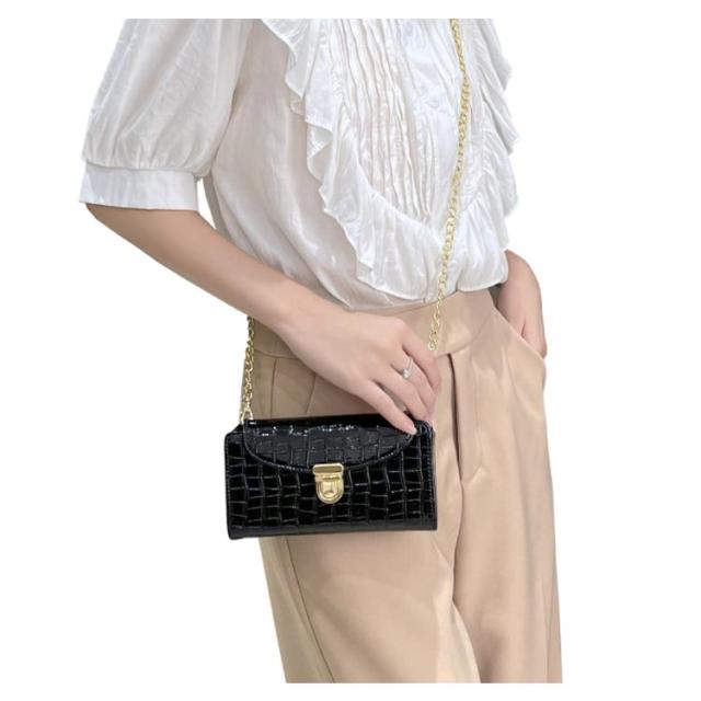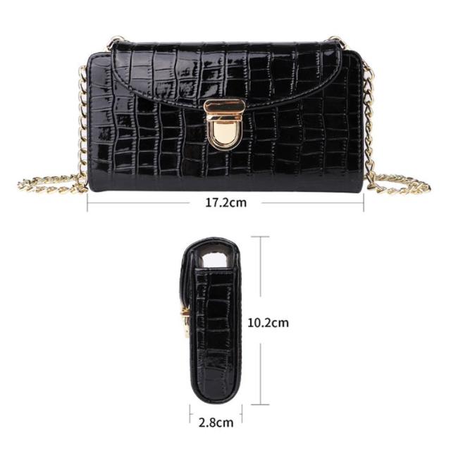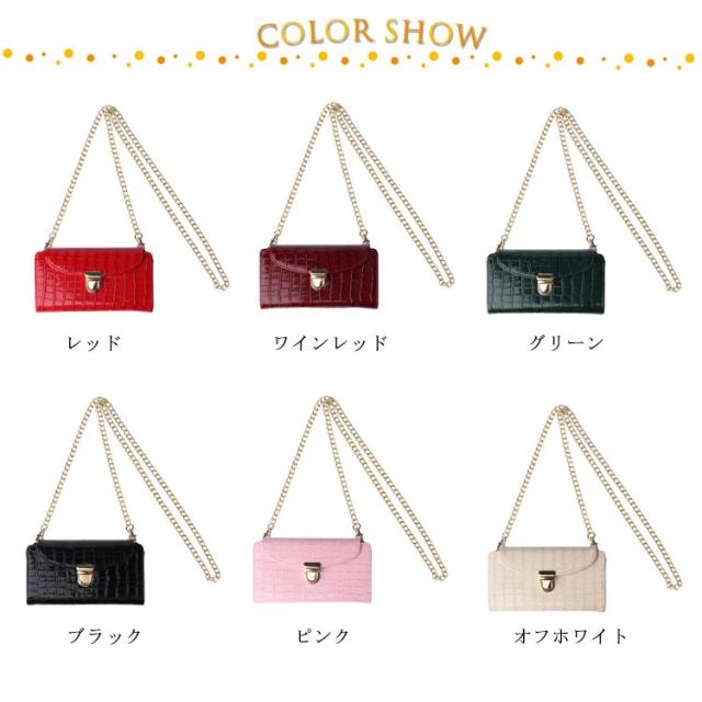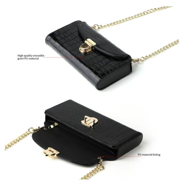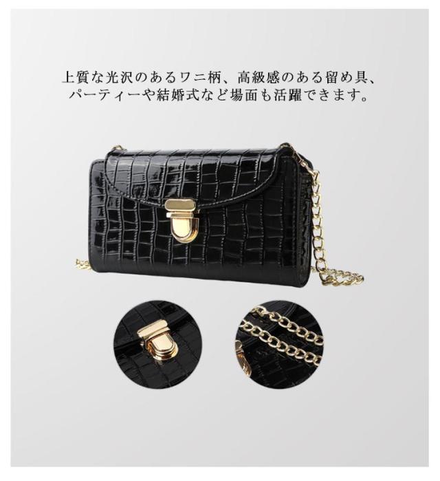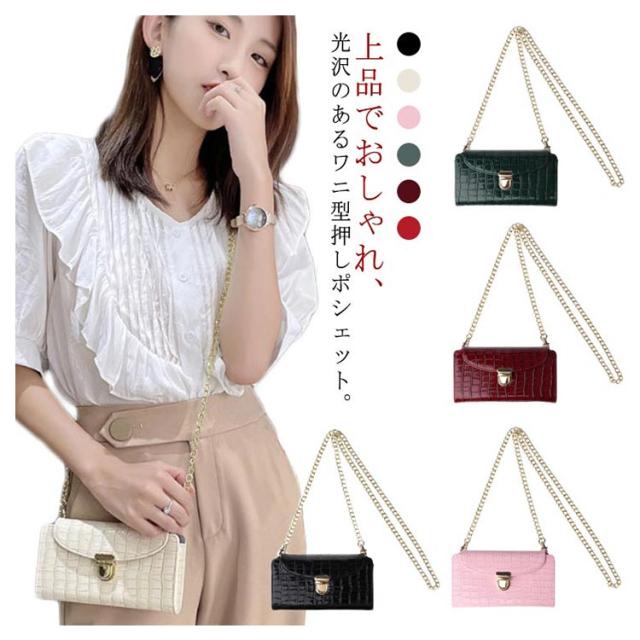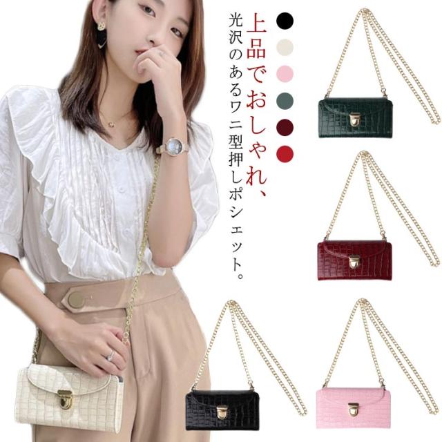スマホポーチ スマホショルダー 横型 ポシェット 全機種対応 斜め掛け 携帯 ミニバッグ エナメル ワニ柄 薄型 軽量 ショルダーバッグ お財布 上品 レディース チェーンストラップ