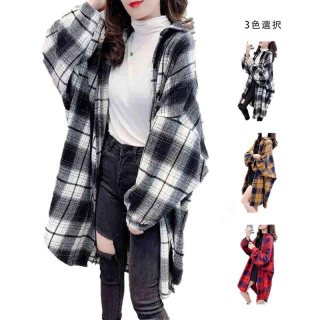チェックシャツ チェック柄 ビッグシルエット ロング丈 シャツ チュニック 羽織 長袖 トップス レディース ゆったりサイズ 大きいサイズ オーバーサイズ 送料無料