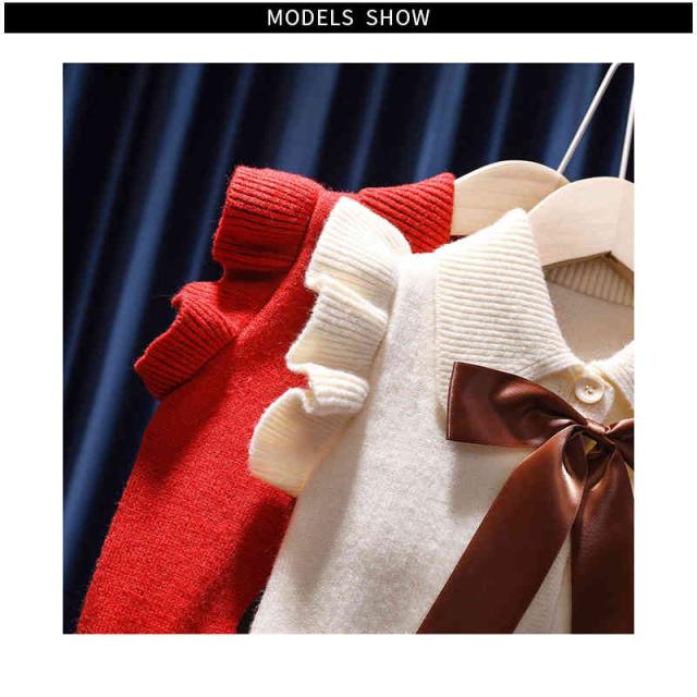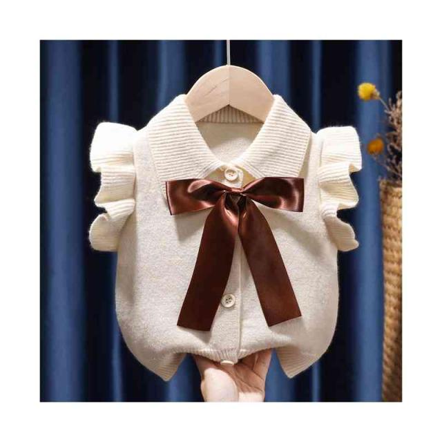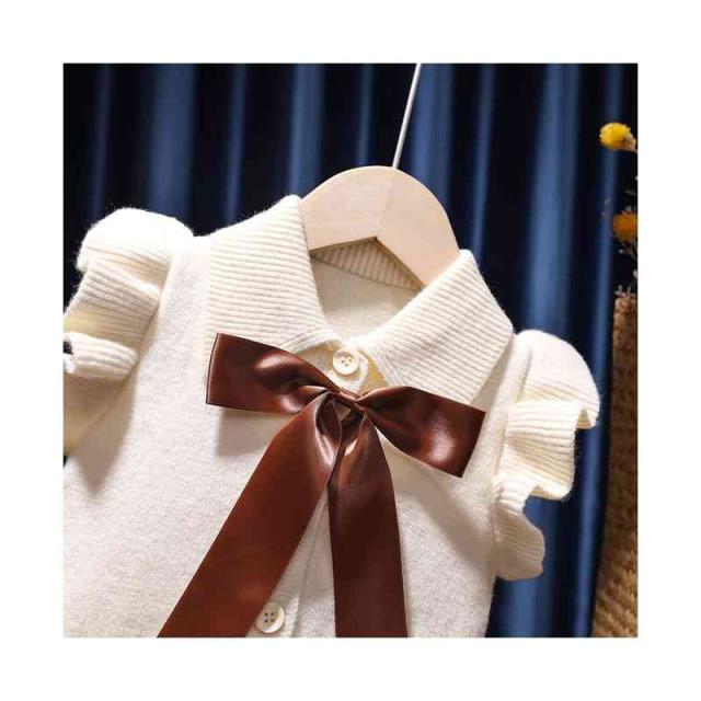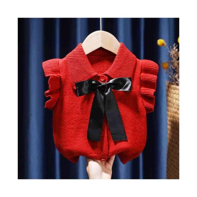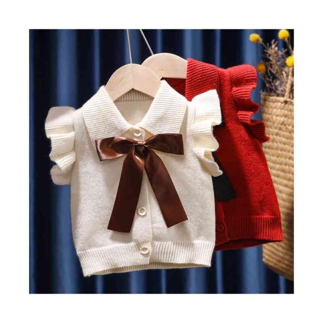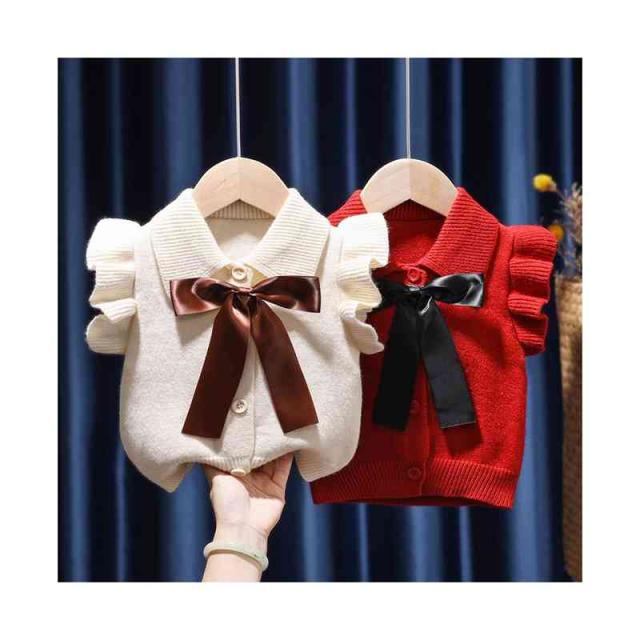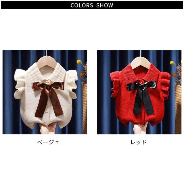 ニットベスト ニット ベスト キッズ 女の子 韓国子供服 子供服 子ども服 こども服 リボン 秋 冬 80 90 100 110 120 130 袖フリル 送料無料