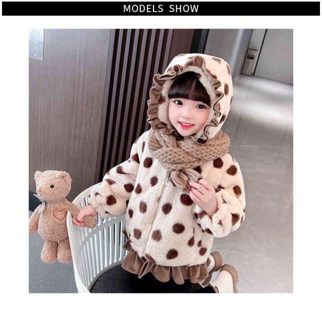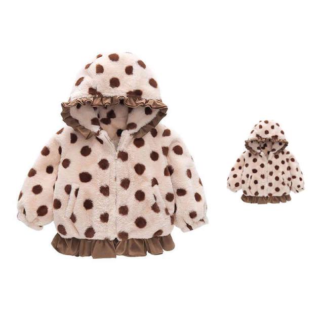 秋冬 ボアジャケット フード付きジャケット キッズ 女の子 ドット柄 フード付き ボアジャケット ドット柄ジャケット アウター シンプル カジュアル おしゃれ 送料無料 おでかけ 暖かい 防寒 子供服
