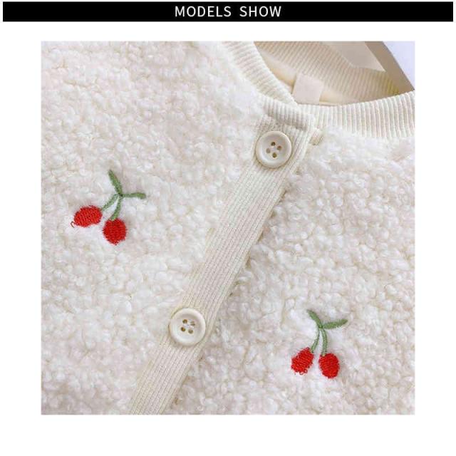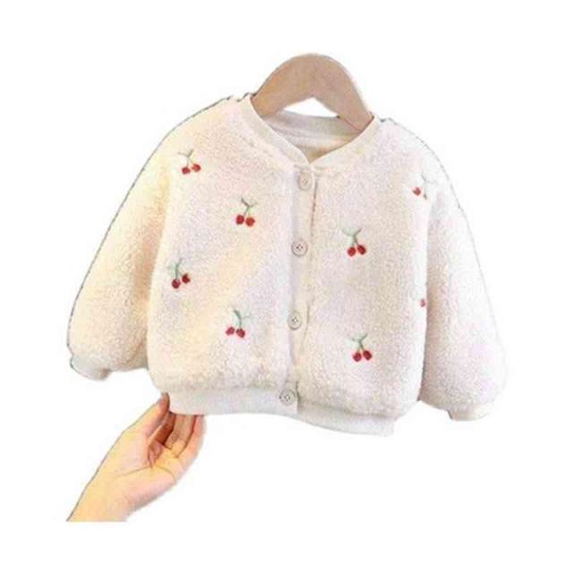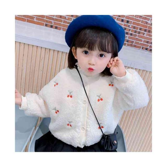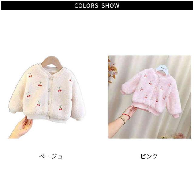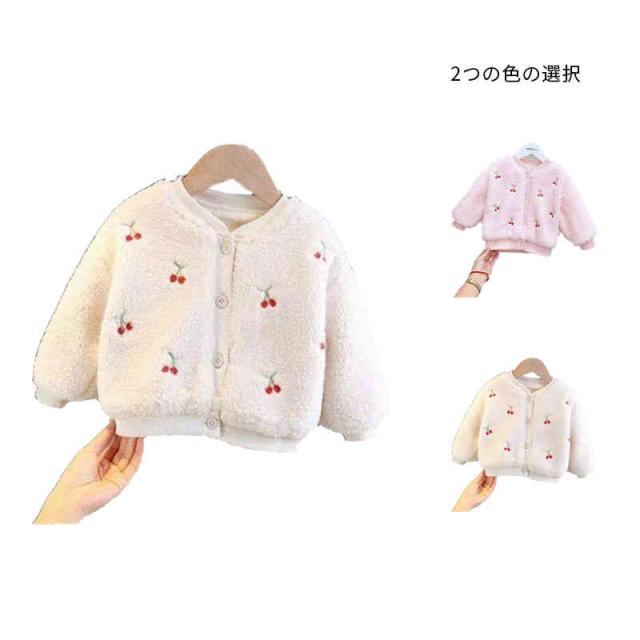 ボアカーディガン キッズ 裏起毛カーディガン 長袖 丸襟 カーディガン 桜桃カーディガン 暖かい ショ-トカーディガン シンプル カジュアル おしゃれ 女の子 子供服 防寒 送料無料 おでかけ おしゃれ