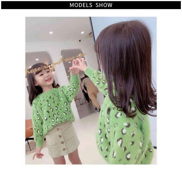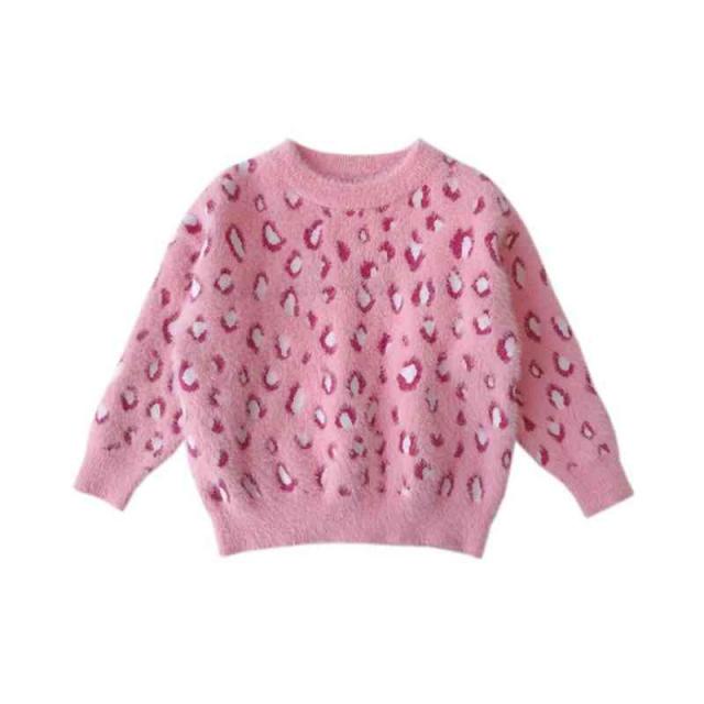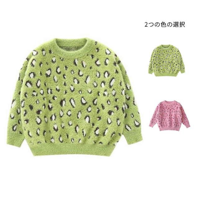 ヒョウ柄セーター キッズ 丸襟 ニットセーター 長袖 カジュアルセーター ニットトップス セーター 秋冬 プルオーバー おしゃれセーター ヒョウ柄 フォーマルセーター シンプル カジュアル おしゃれ 女の子 子供服 ジュニア