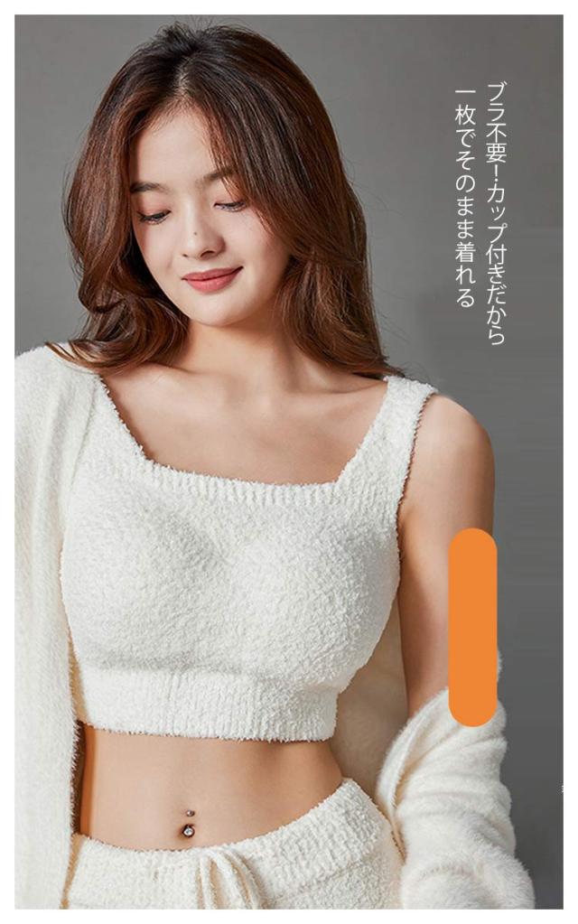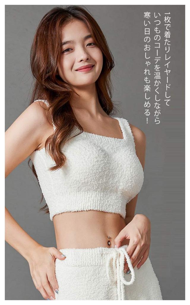 | 一枚で二役カップ付きあったかインナータンクトップ。 ブラ不要!カップ付きだから一枚でそのまま着れる。 もこもこ&ふわふわがとっても可愛い。 伸縮性に優れ、体に気持ちよくフィットし、快適で束縛感がない。 肩紐を細めに作ることでトップスから見えにくく、寒い日のおしゃれコーデに大活躍。 | |