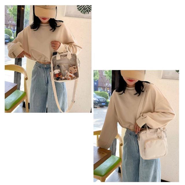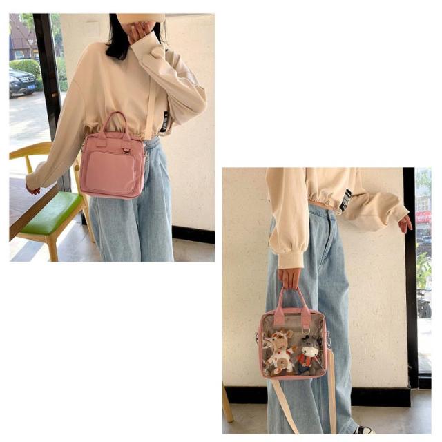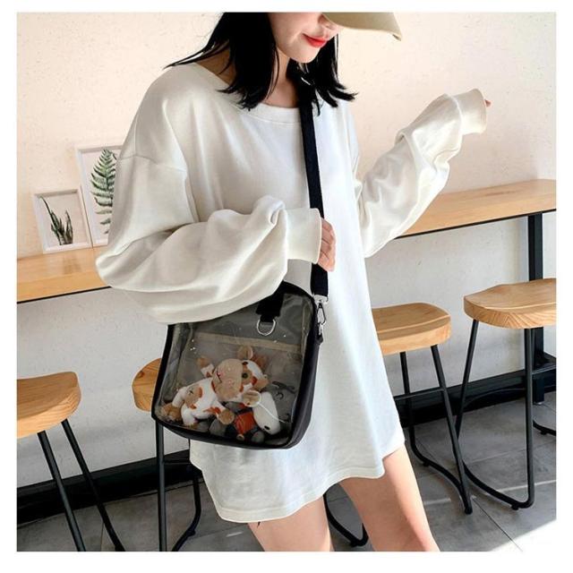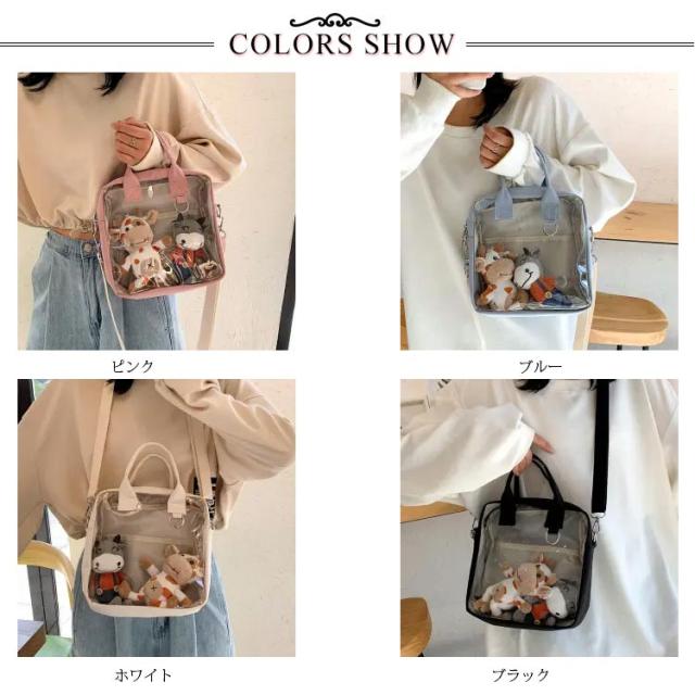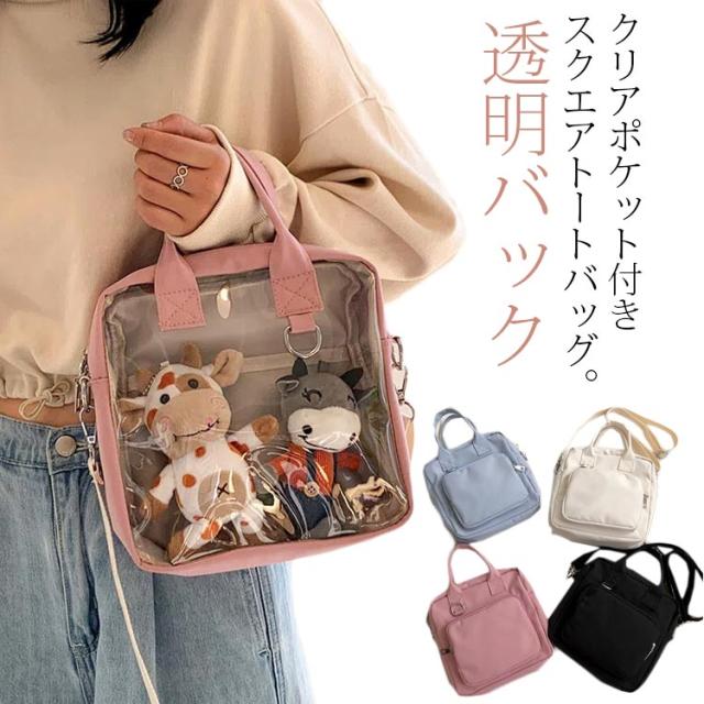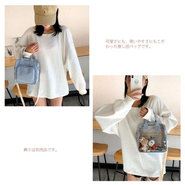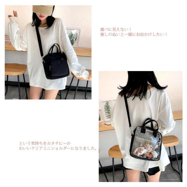 透明バック クリアポケット付き 見せバッグ 痛バッグ ショルダーバッグ トートバッグ ミニ 小さめ クリアバック ぬいぐるみ デイバック 痛バ 痛いバッグ 缶バッジ 斜めかけ バッグ 肩掛けバッグ 通学 遠足 イベント用 レディース ガールズ カバン かわいい 推し活バッグ