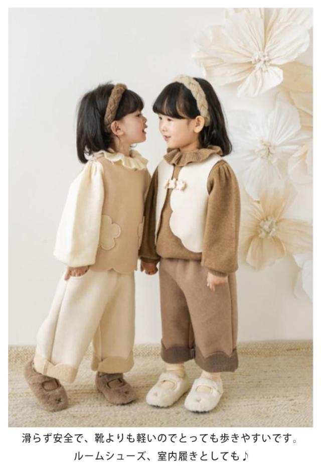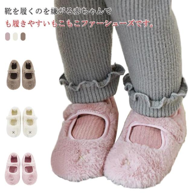もこもこ靴 バレエ シューズ キッズ 子ども 子供靴 ベビーシューズ フラットシューズ ファーストシューズ ルームシューズ ベビー靴 赤ちゃん 裏起毛 ボア アンクルストラップ フォーマルシューズ 防寒 室内履き 在宅 保温 おしゃれ