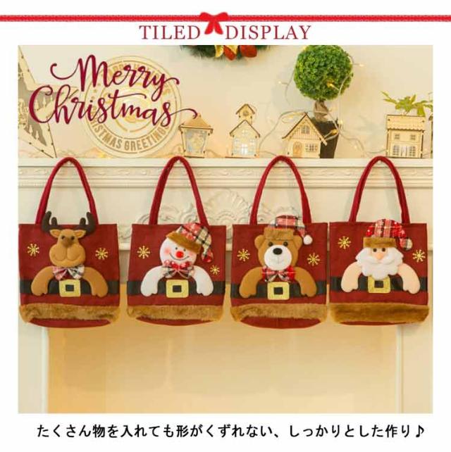 【送料無料】クリスマス トートバッグ サンタ スノーマン トナカイ くま バッグ かばん キャラクター 可愛い 手提げバッグ トートバッグ キャンディバッグ クリスマス お菓子入れ 子供会 保育園 幼稚園 景品 イベント お祭り プレゼント