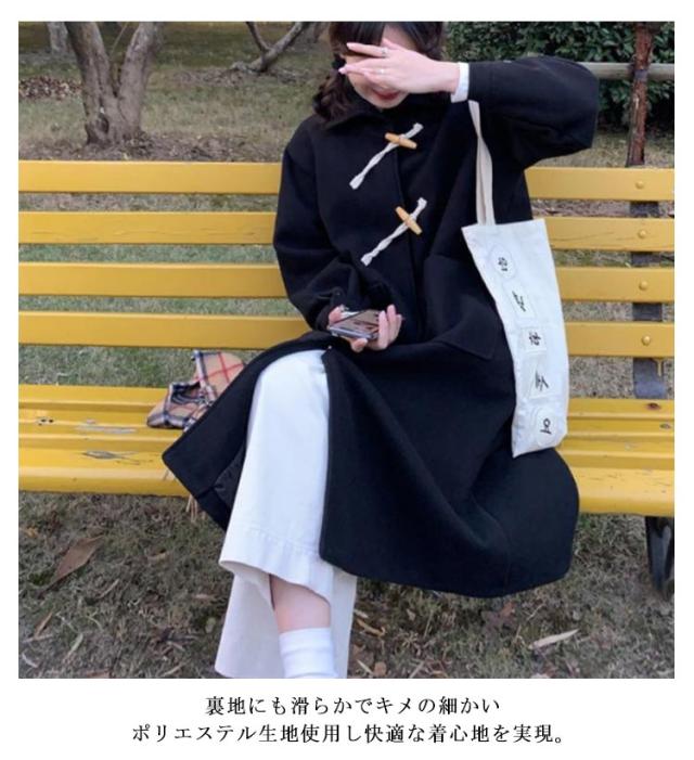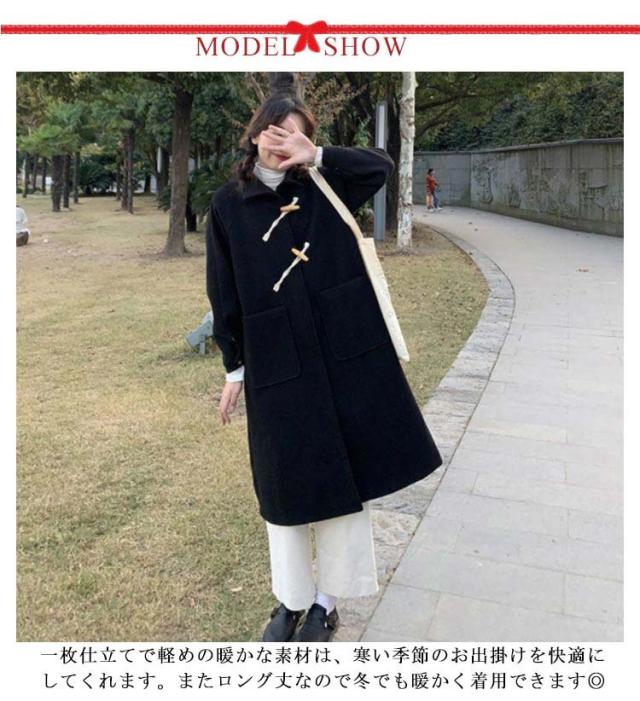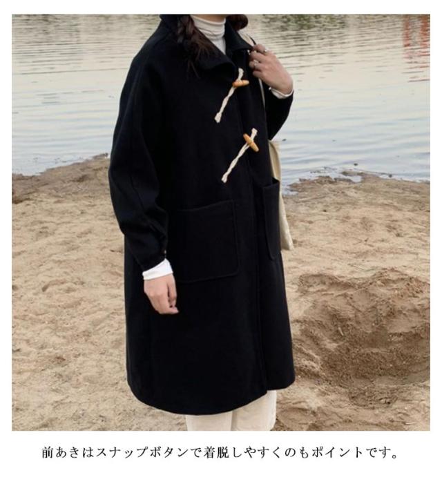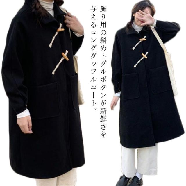 ダッフルコート ロング レディース ステンカラーコート ロングコート 膝下丈 斜めボタン スナップボタン ゆったり 裏地付き 厚手 あたっか ウールライク 通勤 通学 コート 無地 シンプル おしゃれ カジュアル 【送料無料】