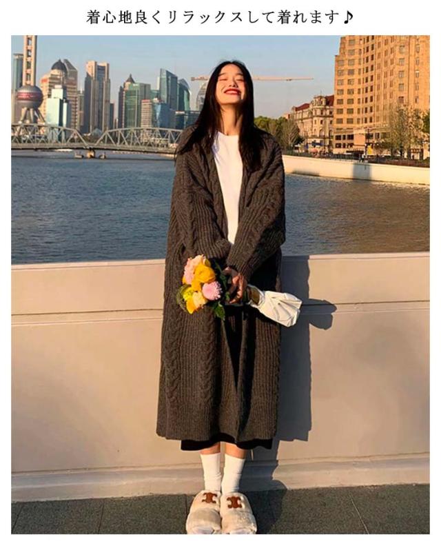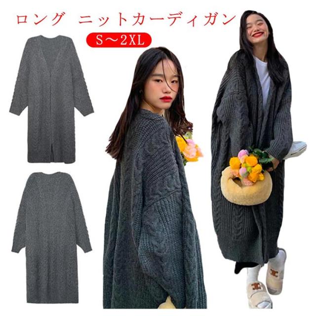 ロング ニットカーディガン レディース 秋冬 トップス 羽織 長袖 パフ袖 Vネック ローゲージニット ケーブル編み カーディガン ロングカーディガン ドロップショルダー 大きいサイズ カジュアル かわいい 可愛