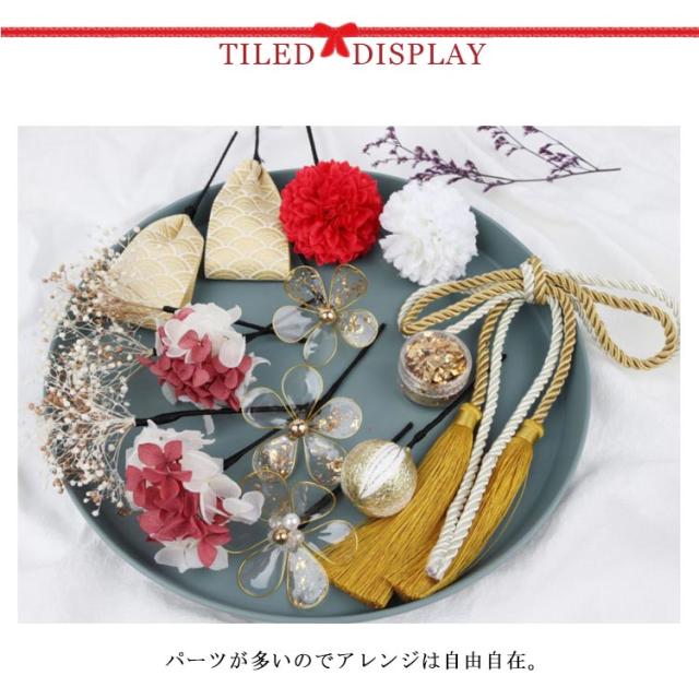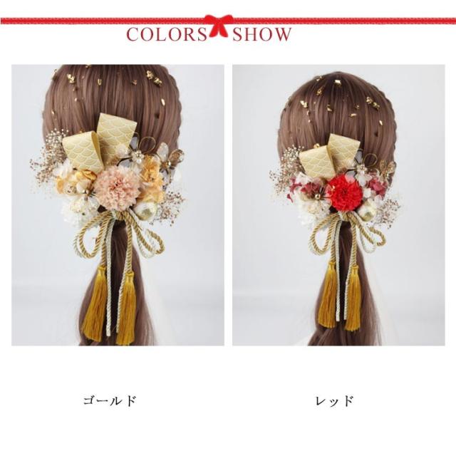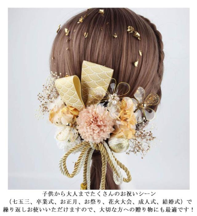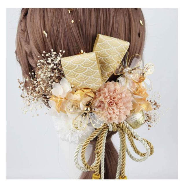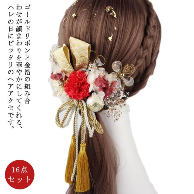 【送料無料】髪飾り 成人式 16点セット ドライフラワー ゴールド 金箔 水引 紐 造花 かすみ草 菊 リボン 和玉 かんざし 和装 お花 振袖 袴 ウェディング 結婚式 卒業式 成人式 前撮り 華やか 高級感 大人