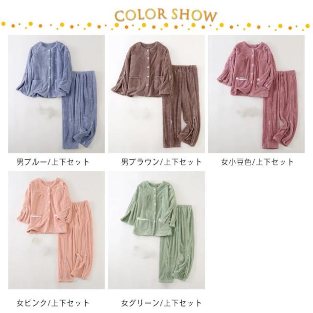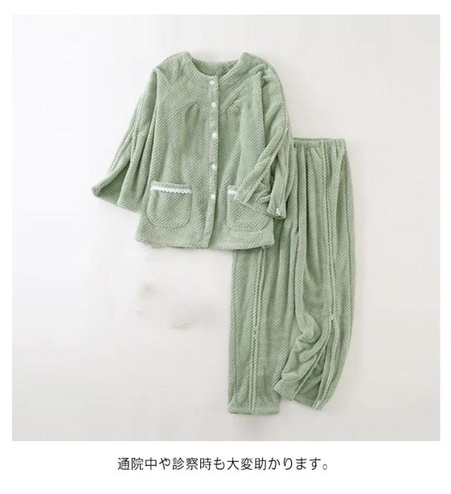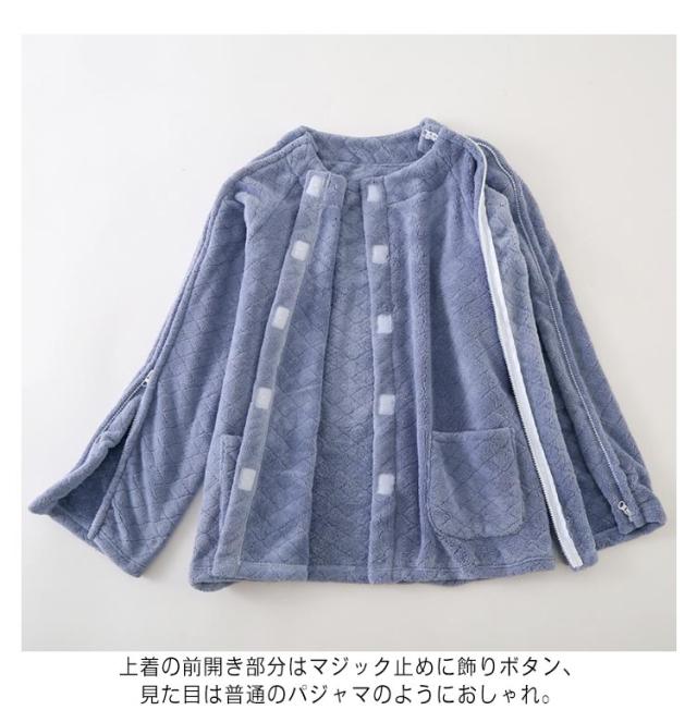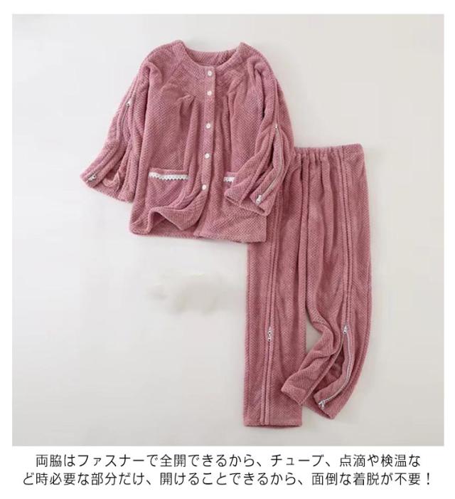 介護パジャマ 厚手 介護用パジャマ ふわふわ 全開 長袖 パジャマ 上下セット 女性 レディース 男性 入院 オムツ交換楽チン 高齢者 シニア 秋冬 服 両開き 防寒 保温 失禁ケア 手足不自由 診察 検査着 在宅介護 部屋着 ルームウェア 介護ねまき