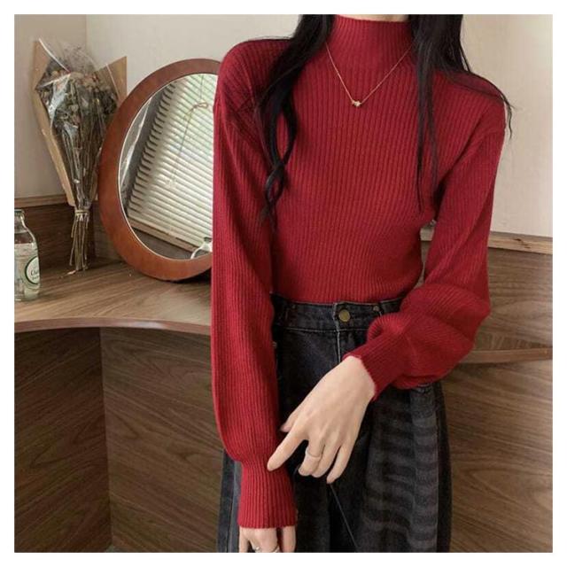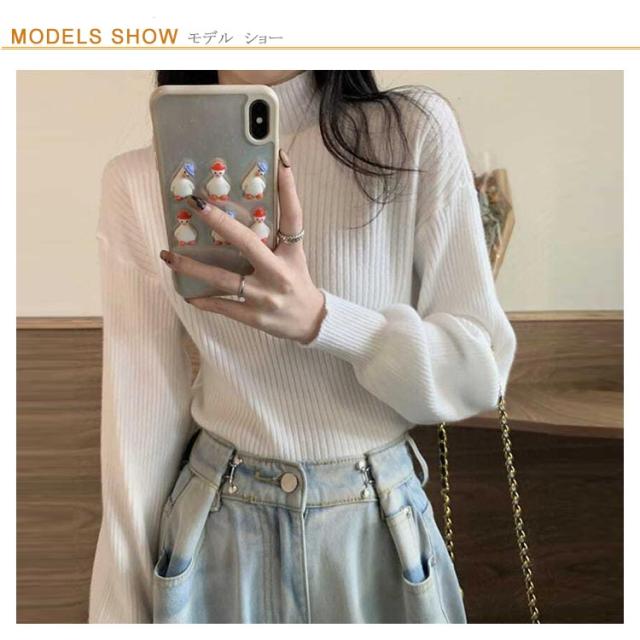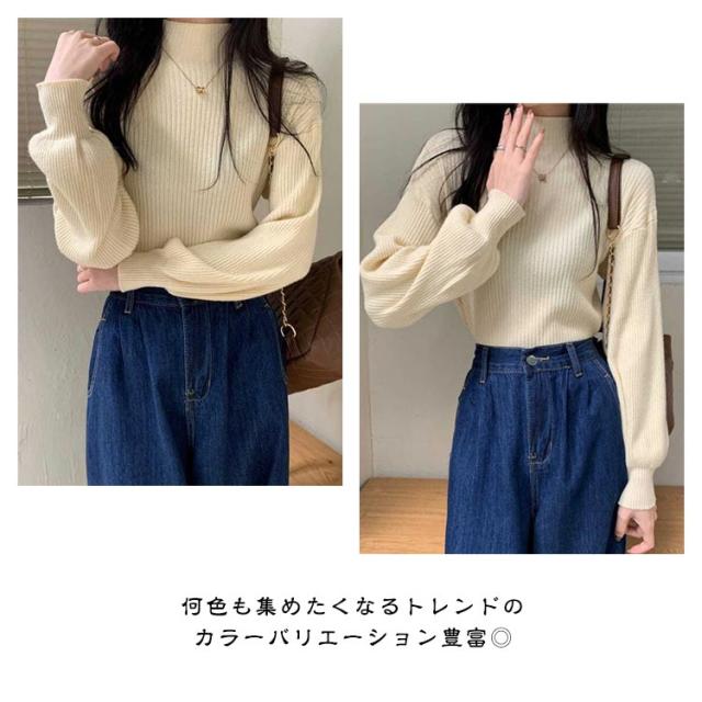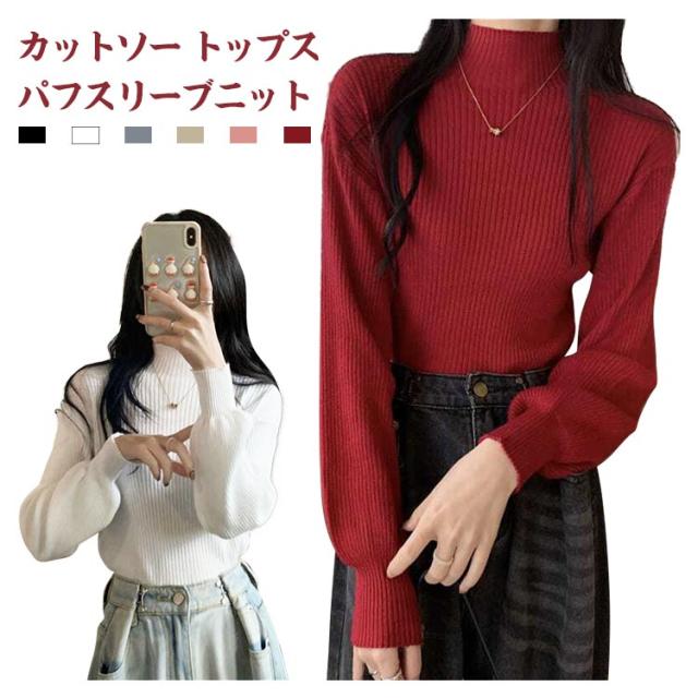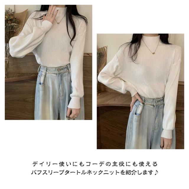 送料無料 カットソー トップス ゆったり パフスリーブニット レディース セーター パフスリーブ 長袖 カラー 着まわし タートルネックニット 秋冬 春秋 春服 シンプル ニットプルオーバー
