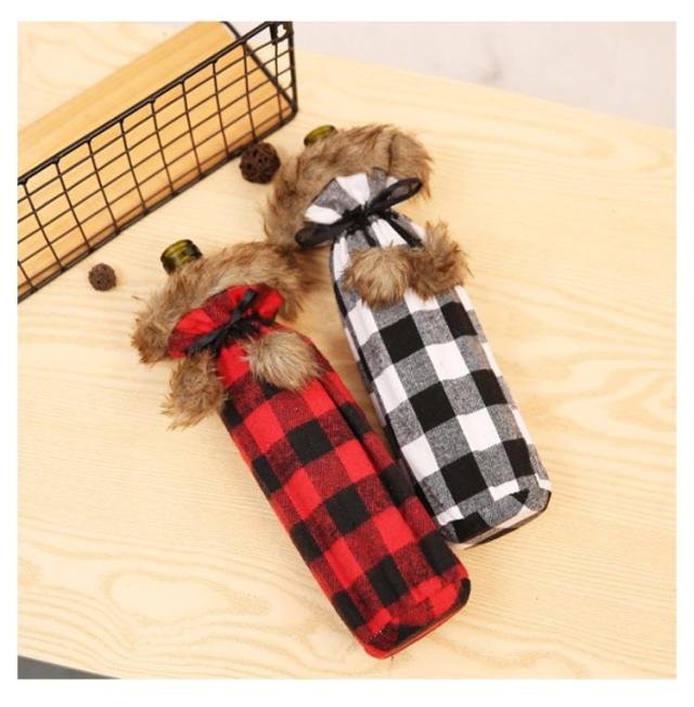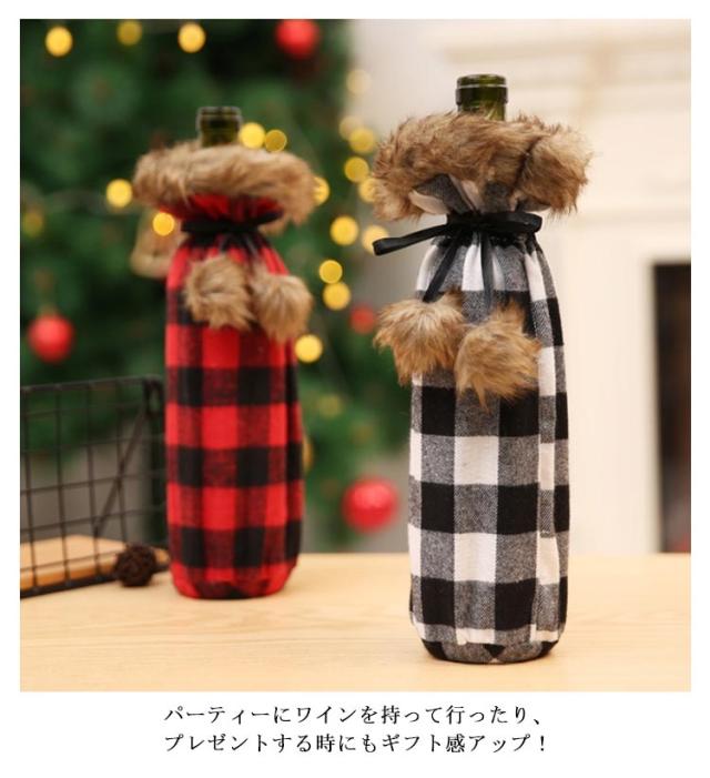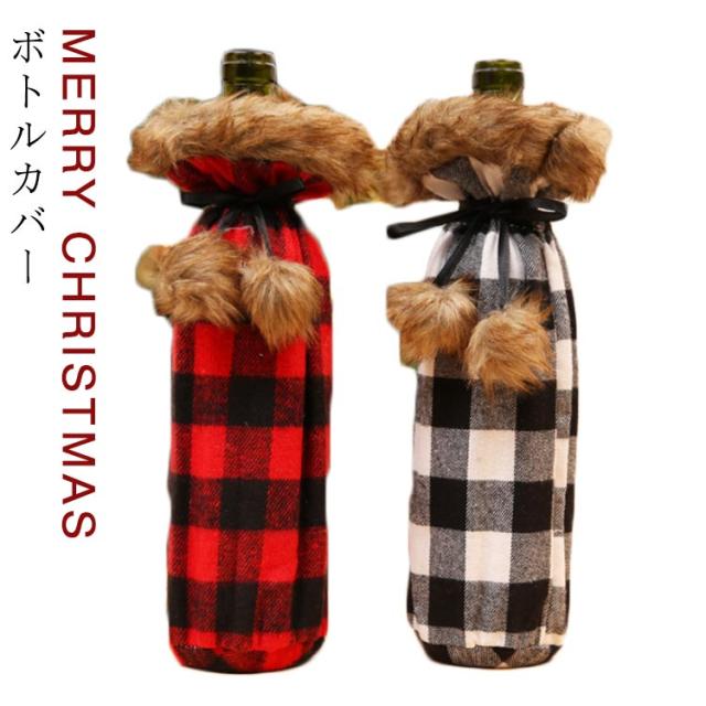 チェック ボトルカバー クリスマス 洋服型 ワイン スパークリング シャンパン シャンメリー ボトルカバー ファーコート風 ボトル デコレーション ワインボトルカバー ワインカバー クリスマス ボトルカバー ボトルケース シャンパンボトルカバー ワインボトル 送料無料