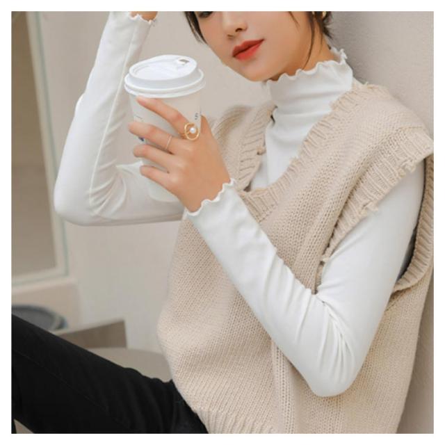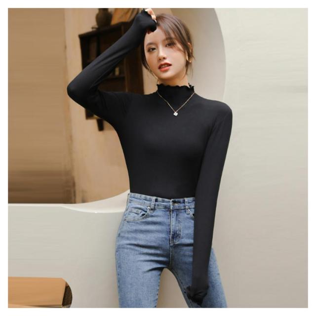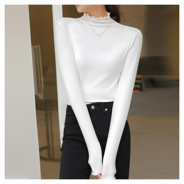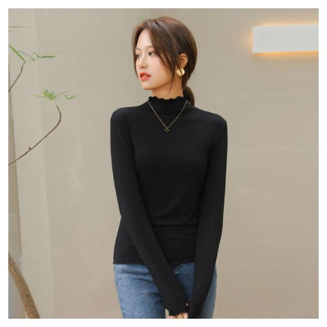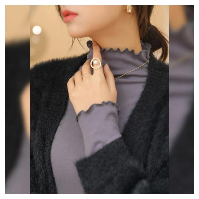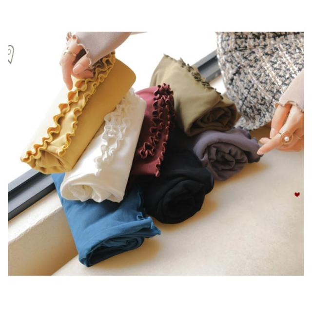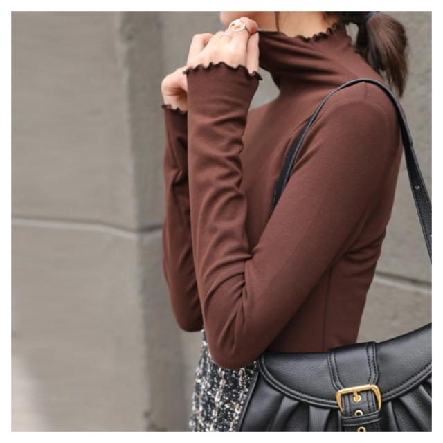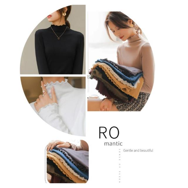 タートル カットソー Tシャツ レディース 長袖Tシャツ タートルネック ハイネック フリル メロウトップス ロンT インナー レイヤード 重ね着 タイト シンプル 伸縮性 大人 カジュアル トレンド 着回し 無地 細身 薄手 オールシーズン