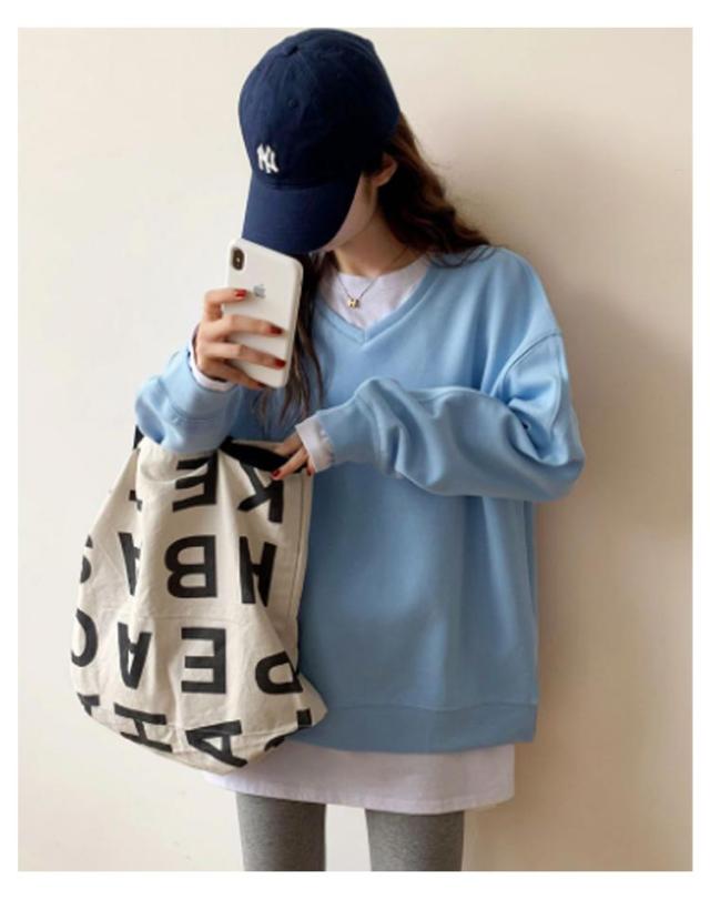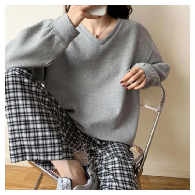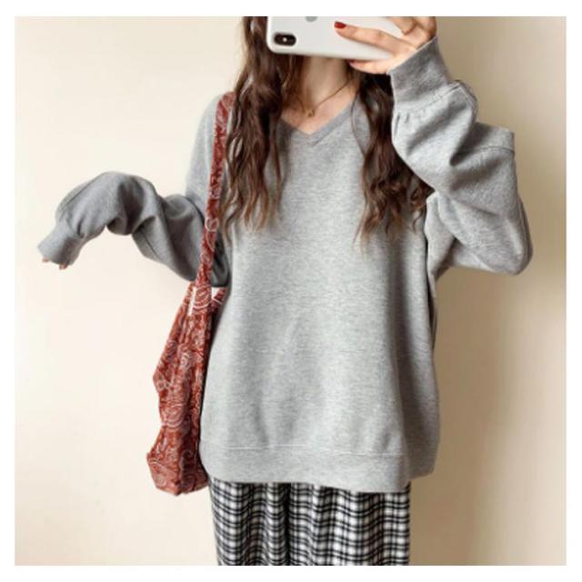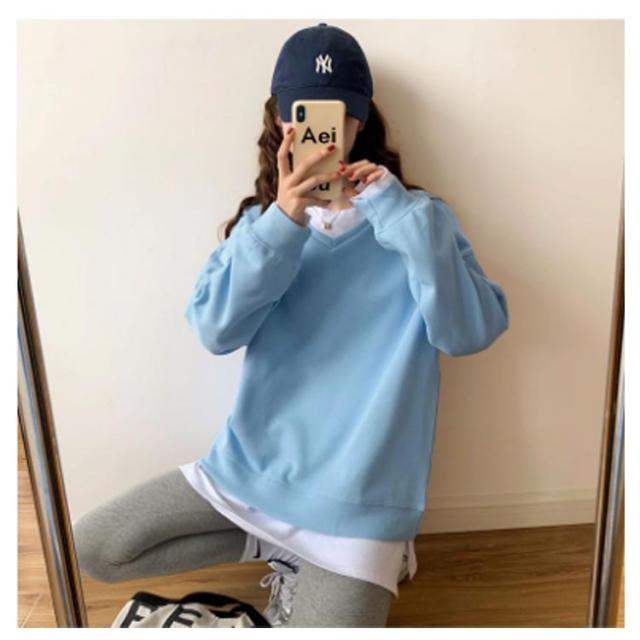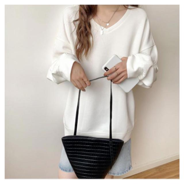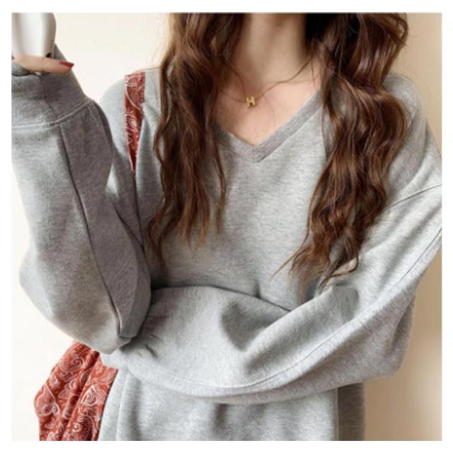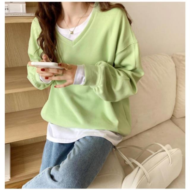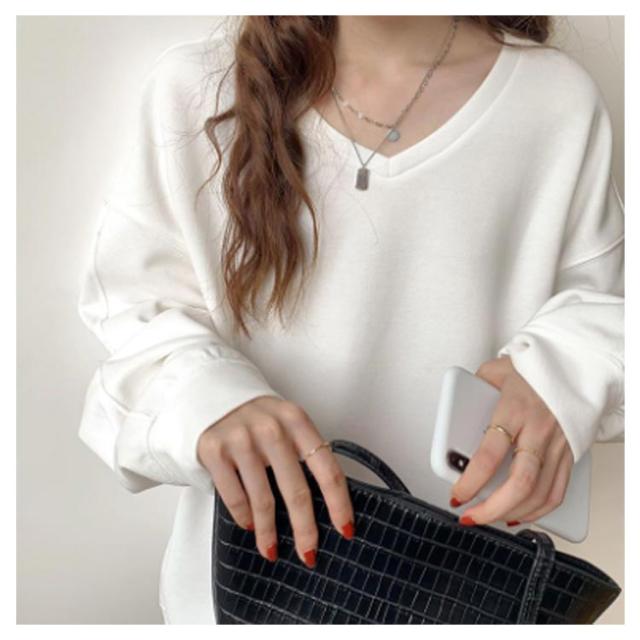 送料無料 トレーナー スウェット Tシャツ スエット Vネック レディース プルオーバー パーカー 長袖 トップス カットソー 無地 軽量 ボリューム袖 ドロップショルダー レイヤード 重ね着 ゆったり 大きいサイズ 体型カバー カラバリ