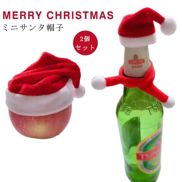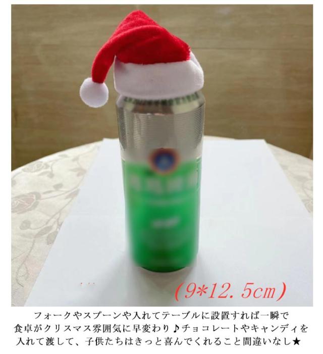 サンタ帽子型 ボトルカバー クリスマス 2点セット マフラー サンタ帽子 ワインボトルカバー ボトルカバー ミニサンタ帽子 リンゴカバー アップルカバー カトラリーカバー 食器カバー ナイフカバー スプーンカバー フォークカバー キャンディー入れ 送料無料