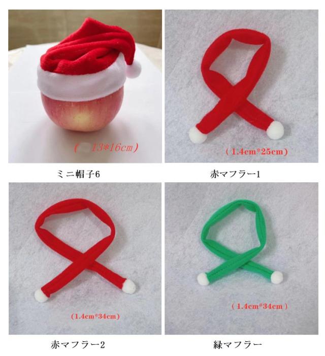 | 色 | ミニ帽子1 ミニ帽子2 ミニ帽子3 ミニ帽子4 ミニ帽子6 赤マフラー1 赤マフラー2 緑マフラー |