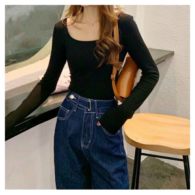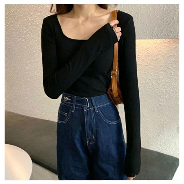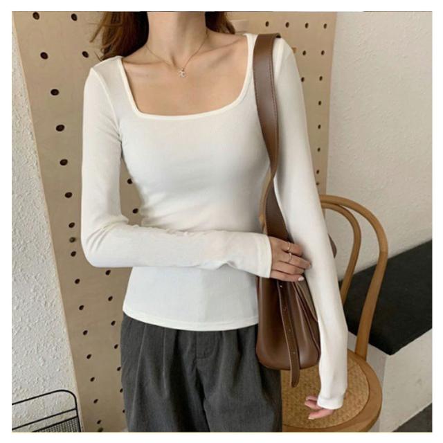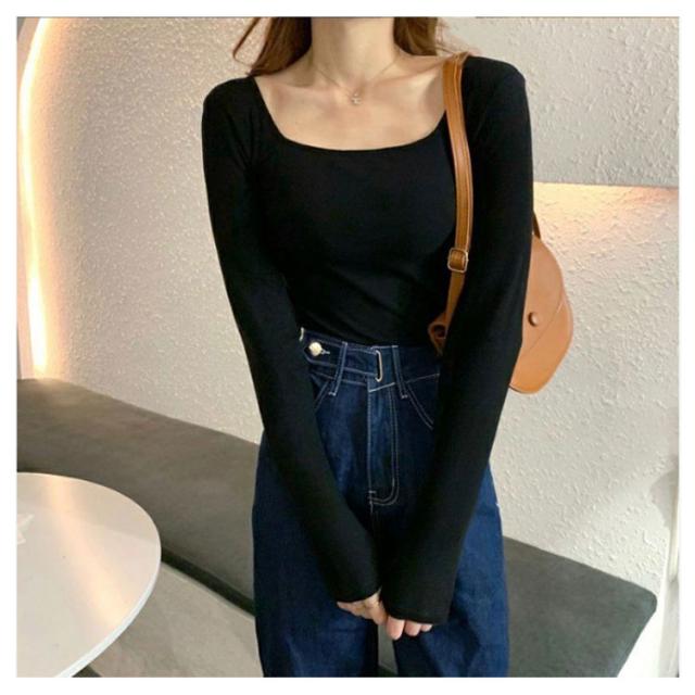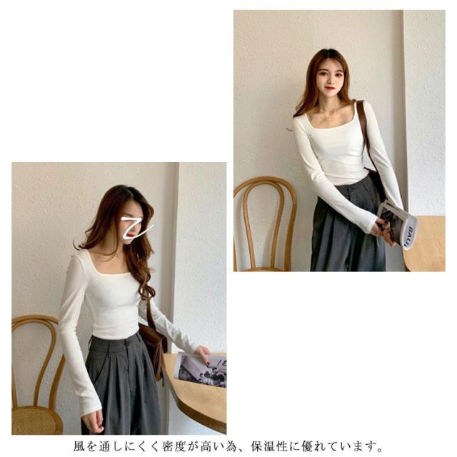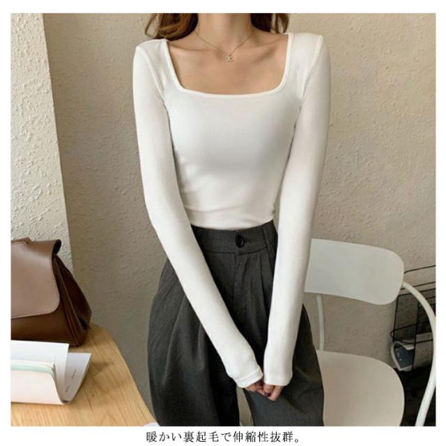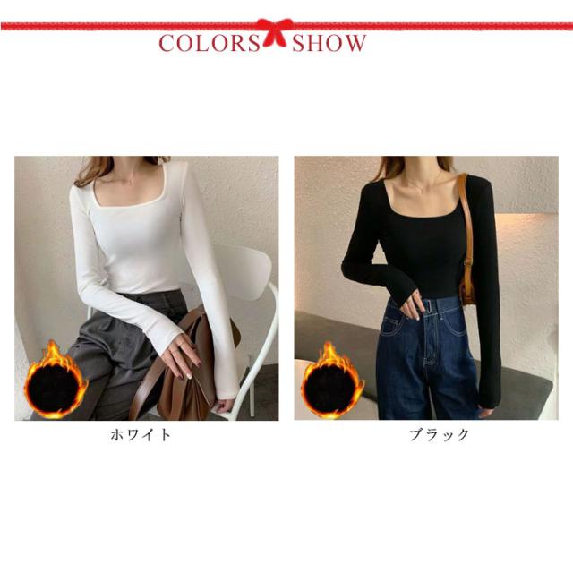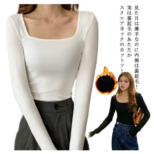 裏起毛 インナーシャツ スクエアネック 深あき 見えない レディース 長袖 カットソー ロンt トップス 厚手 保温 あったかインナー tシャツ 黒 白 大きいサイズ S M L XL 2XL 細身 スリム フィット ヒートカットソー sale 【送料無料】