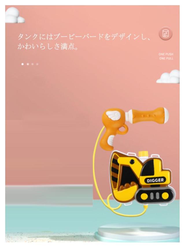 | 家族・仲間でおおはしゃぎ、リュック型水鉄砲セット 水を入れたタンクをリュックのように背負ってあそべる水鉄砲。 ベルトの長さは調節可能で、小さなお子様から大人の方まで遊べます。 タンクにはブービーバードをデザインし、かわいらしさ満点。 | |