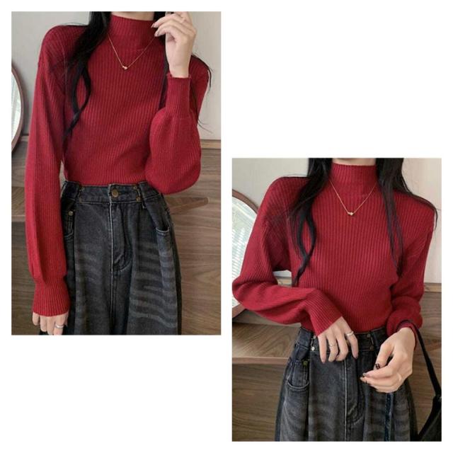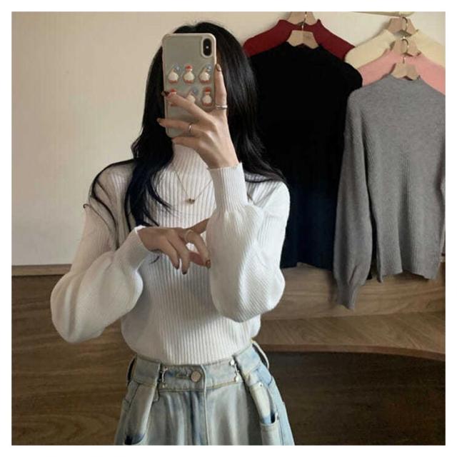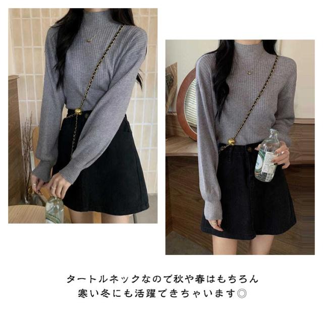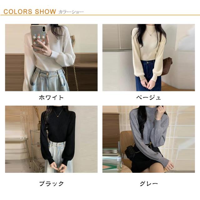 送料無料 カットソー トップス ゆったり パフスリーブニット レディース セーター パフスリーブ 長袖 カラー 着まわし タートルネックニット 秋冬 春秋 春服 シンプル ニットプルオーバー