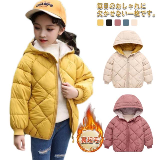 中綿ジャケット キッズ ダウン コート ベビー服 裏ボア 裏起毛 フード付き キルティング 女の子 男の子 防寒 保温 アウター ブルゾン 秋冬 冬服 無地 暖かい 軽量 ダウンアウター おしゃれ 90 100 110 120 130 140 送料無料
