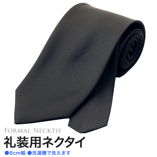 | 【ポリエステル100%】8cm幅 フォーマルネクタイ(ブラック)ご家庭の洗濯機で洗えます |