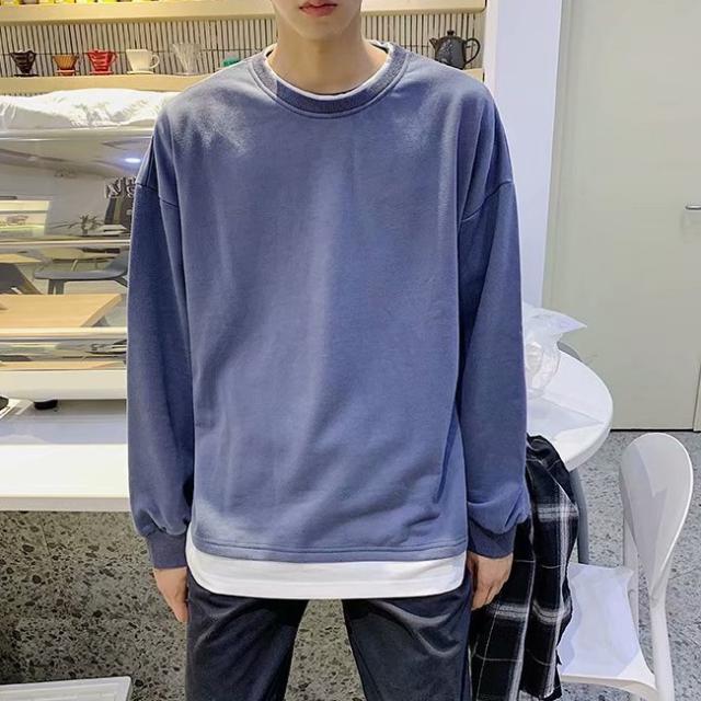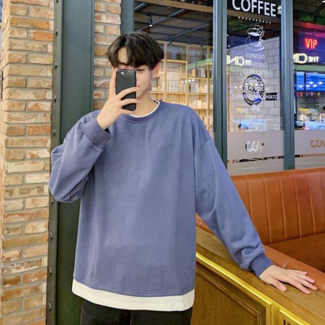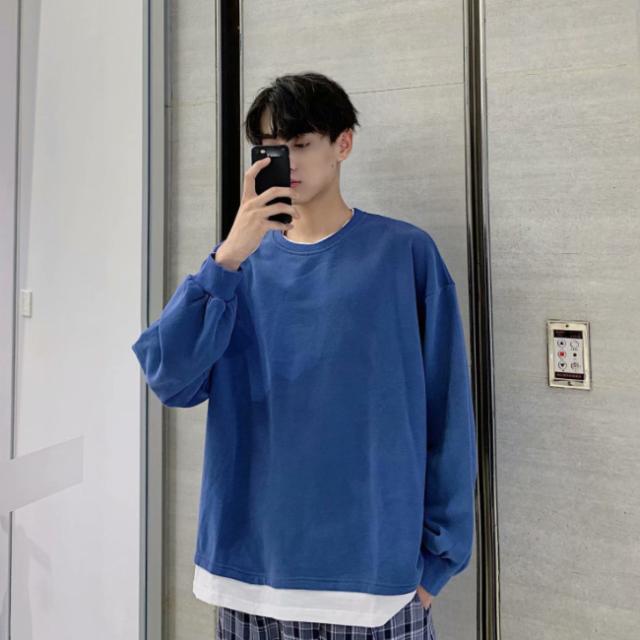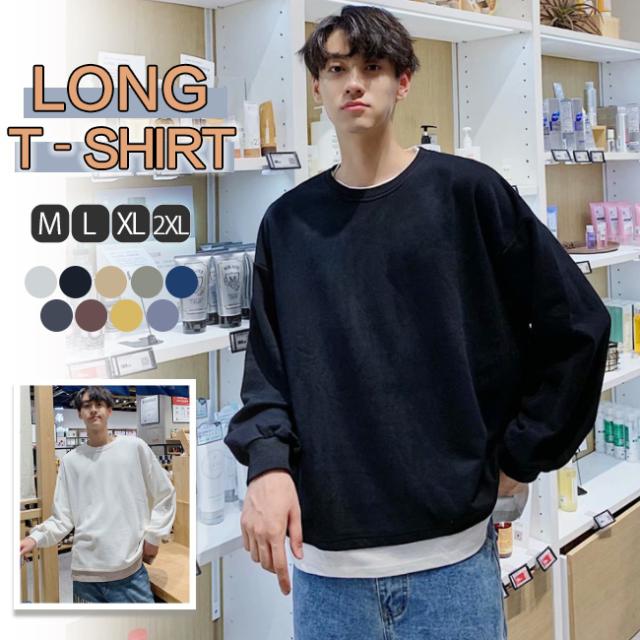 Tシャツ メンズ 冬新作 送料無料 トップス ロンT ロングTシャツ tシャツ クルーネック 重ね 大きいサイズ 無地 長袖 カットソー インナー 父の日 ギフト 切り替え