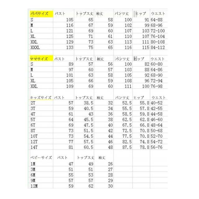 | サイズ | S M L XL 2XL 3XL キッズ2 キッズ3 キッズ4 キッズ5 キッズ6 キッズ8 キッズ10 キッズ12 キッズ14 ベビー1 ベビー3 ベビー6 ベビー9 ベビー12 |