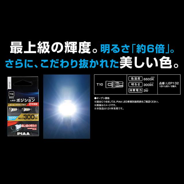 PIAA ポジション用 LEDバルブ T10 300lm 6600K 2個入 全方向拡散5チップ LEP132
