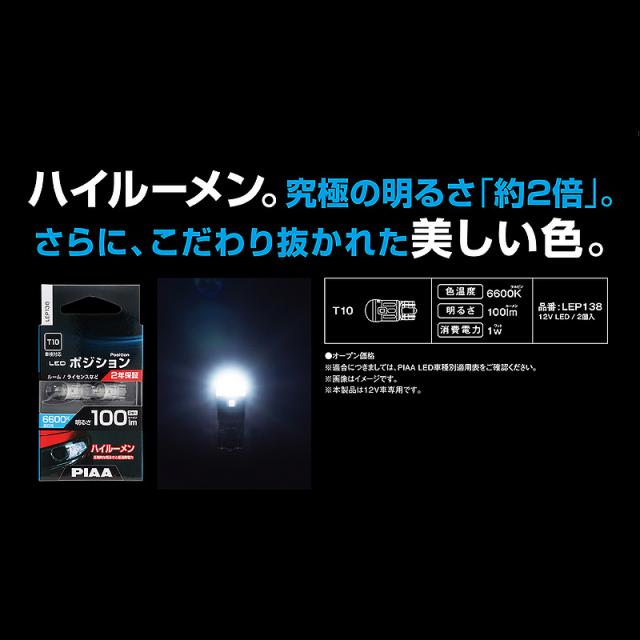 PIAA ポジション用 LEDバルブ T10 100lm 6600K 2個入 LEP138