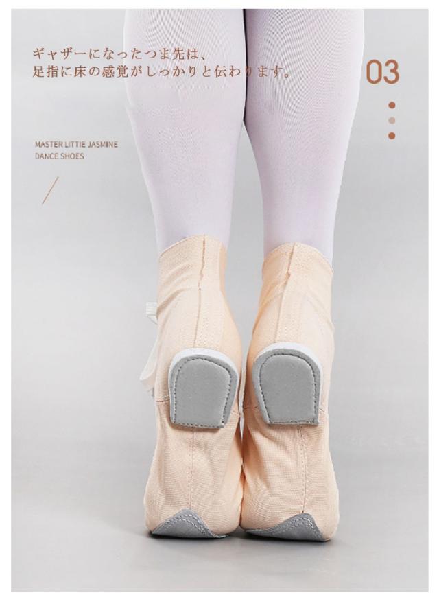 | 軽量で通気性もよく型崩れしにくいジャズシューズです。 表面は均一感があります。汚れにくく、傷もつきにくいのも特徴です。 ヒモのしばり加減で、自分にあったフィット感にしっかり調整できます。 足の形状に合わせてつくられたソールは、足の動きをスムースに! ギャザーになったつま先は、足指に床の感覚がしっかりと伝わります。 脱げにくいのでお子さまにオススメです。 足の形状に合わせてつくられたソールは、足の動きをスムースに! 靴底が前後2つに分かれ(スプリットソール)。ソールのが踏まずにしっかりと付き、フィット性に優れた着用感。足の自由な動きをさまたげません。 ハイカットでブーツのように履けるダンスシューズ。 | |