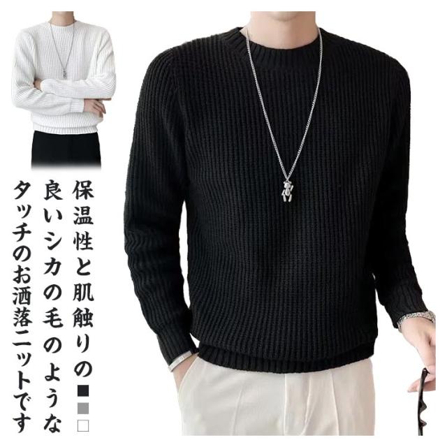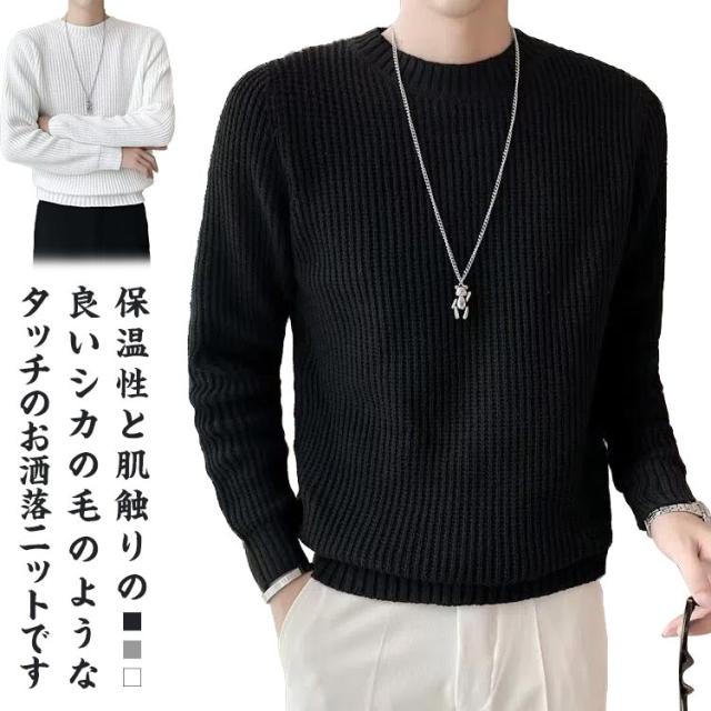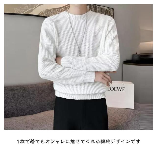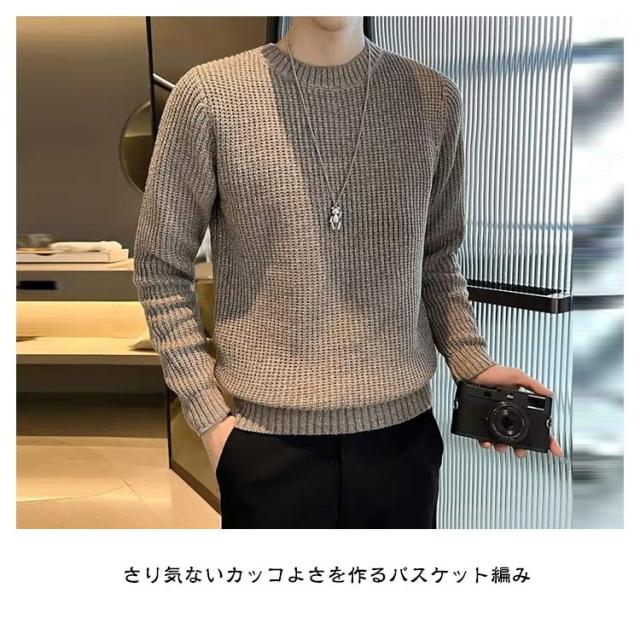 送料無料 くすみカラー 冬 大きいサイズ メンズファッション メンズファッション 秋 オシャレ ニット メンズ セーター トップス 大人 上品 防寒 保温 カットソー ワッフル編み 20代 30代 40代 ストリート ゆったり L M クルーネック XL 2XL 3XL あったかい
