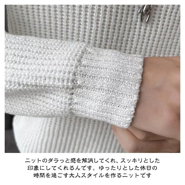 | 保温性と肌触りの良いシカの毛のようなタッチのお洒落ニットです。伸縮性もあるポリウレタン配合で着心地なめらか。こだわりのふんわり素材で大人な印象に。 さり気ないカッコよさを作るバスケット編み。ボディと同色にすることで派手にならず、大人のカッコよさを演出してくれます。1枚で着てもオシャレに魅せてくれる編地デザインです。 肩幅が大きく腕が長く、肩を落としたルーズシルエットでゆったりとした着こなしになります。袖と裾にはリブで絞りを入れております。ニットのダラっと感を解消してくれ、スッキリとした印象にしてくれるんです。ゆったりとした休日の時間を過ごす大人スタイルを作るニットです。 首元がゆるいものだと貧相に見えますが、シッカリ感のあるクルーネックは上品な印象を与えてくれます。ジャケットやコートとも重ね着しやすく、スタイリッシュな冬のコーディネートを作ってくれるニットになります。 | |
