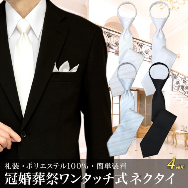 ワンタッチ 礼装ネクタイ 白 黒 シルバー ポリエステル100% 冠婚葬祭 葬儀 法事 結婚式 披露宴 【クロネコゆうパケット】 パーティー 慶事 弔事 ホワイト ブラック フォーマルタイ メンズ 礼服 時短