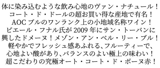 体に染み込むような飲み心地のヴァン・ナチュール!コート・ド・ドールの超お買い得な産地で有名!AOCブルのワンランク上の小地域名称ワイン!ピエール・フナル氏が2009年にサン・トーバンに