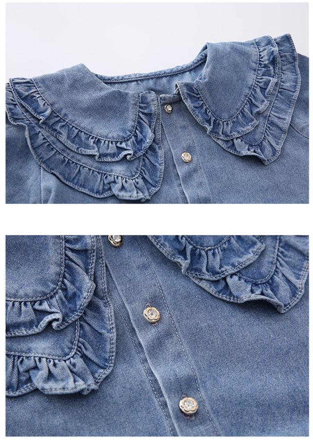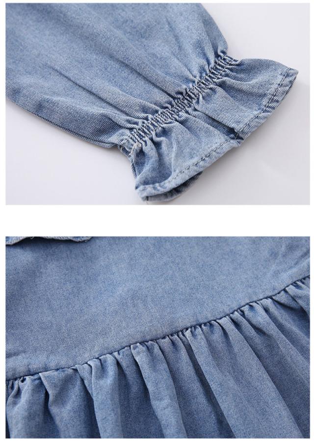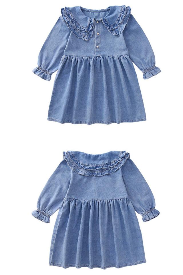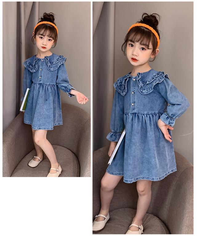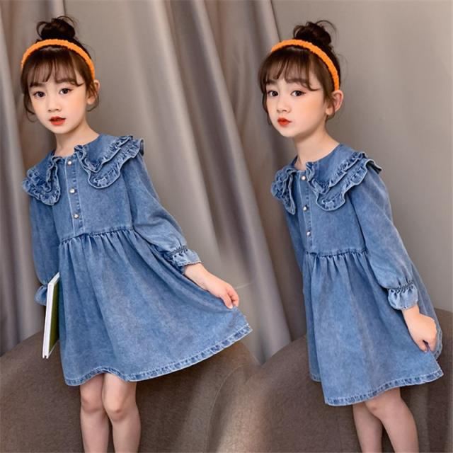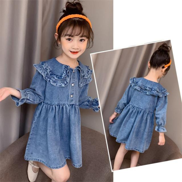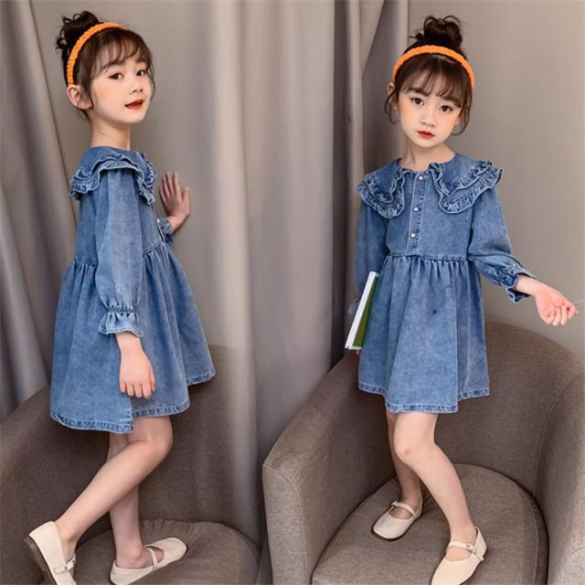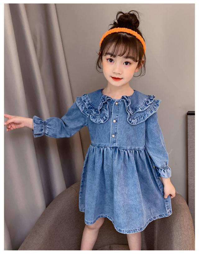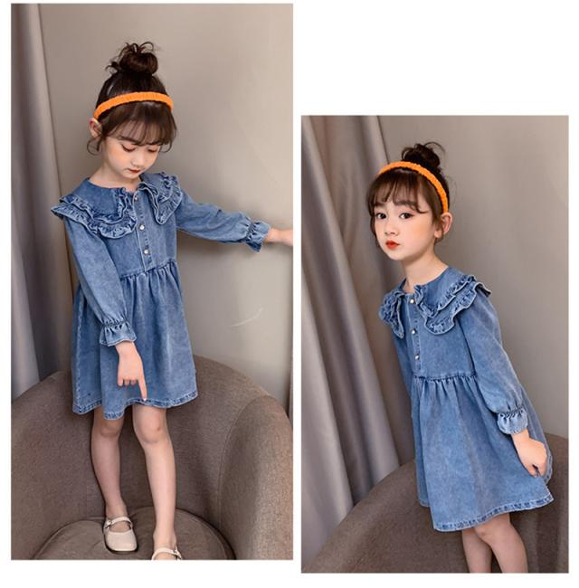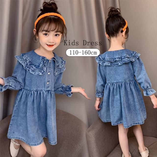 ワンピース 子供服 キッズ 長袖ワンピース 女の子 秋 冬 デニムワンピース 折り襟 無地 子供ドレス ジュニア フレア おしゃれ