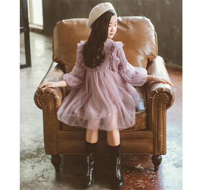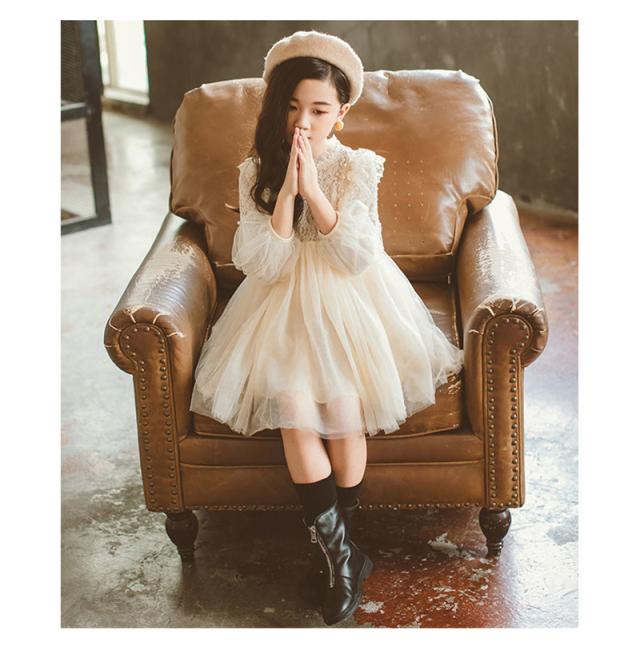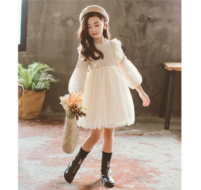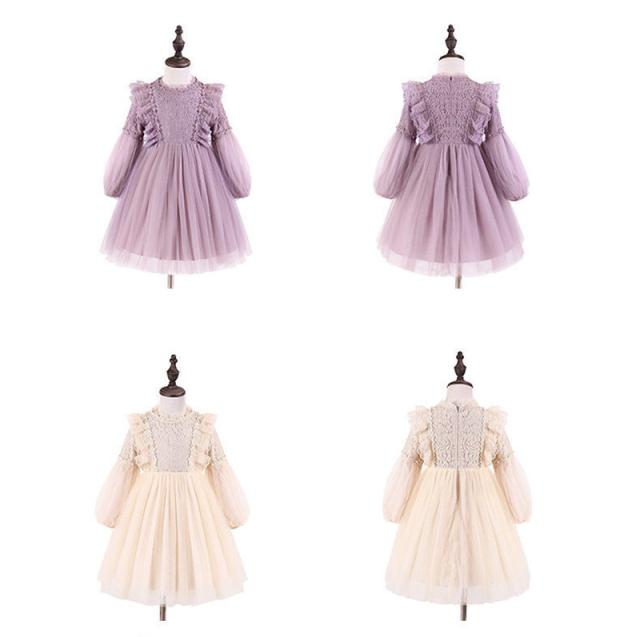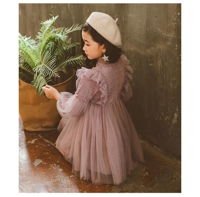 ワンピース 子供服 キッズ 女の子 春 秋着 冬長袖 レースワンピース 膝丈 子供ドレス 韓国風 ジュニア 結婚式 カジュアル お