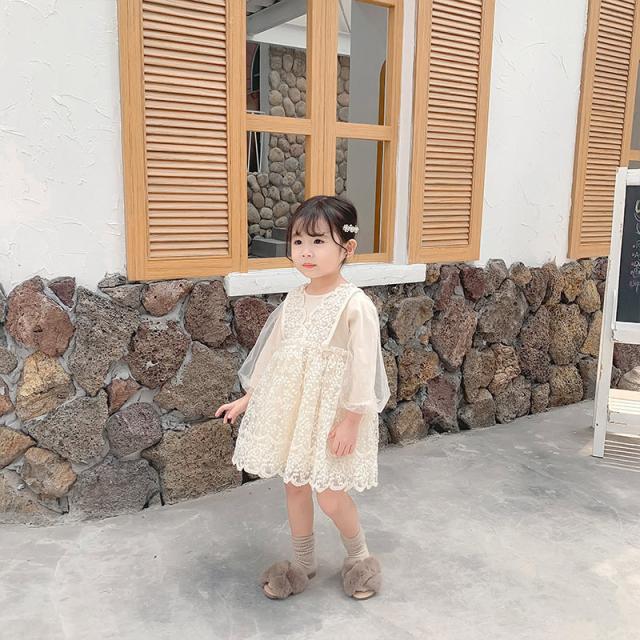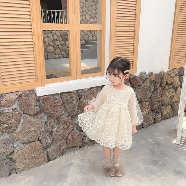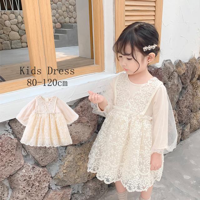 ワンピース 子供服 ドレス キッズ ベビー 子ども用 赤ちゃん 女の子 長袖 ひざ丈 レース チュール フレアスカート 単色 ホワ