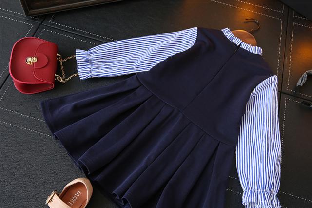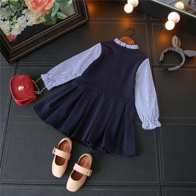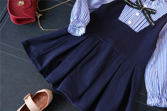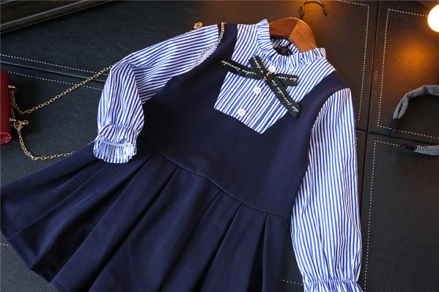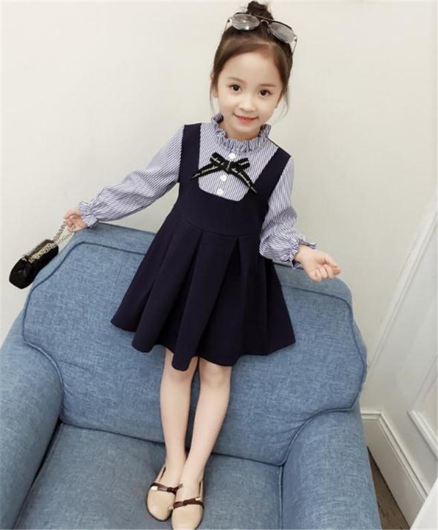 ワンピース 子供服 ブラウス一体型 子供用 女の子 ミニ丈 Aライン プリーツ フレア フリル襟 長袖 セットアップ調 可愛い