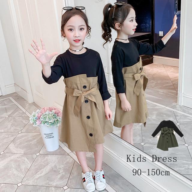 ワンピース 子供服 長袖 スプライシング 女の子 子供服 こども服 子ども服 キッズ 秋 冬 切り替え ギフト プレゼント 韓国風