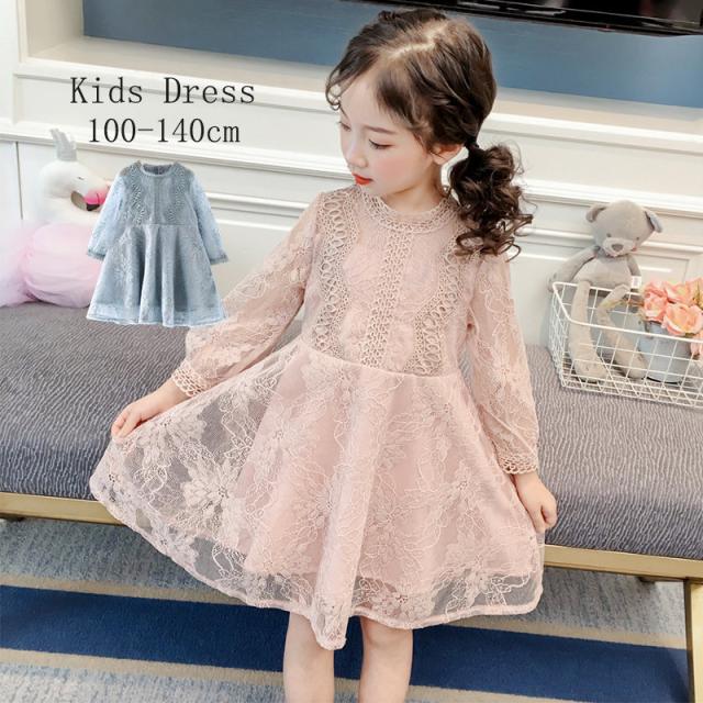 ワンピース 子供服 長袖 レース付き キッズ 長袖 暖かい ミニワンピース コットン ハット 裾フリル 結婚式 発表会 パーティー