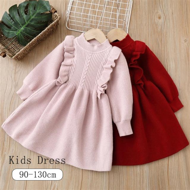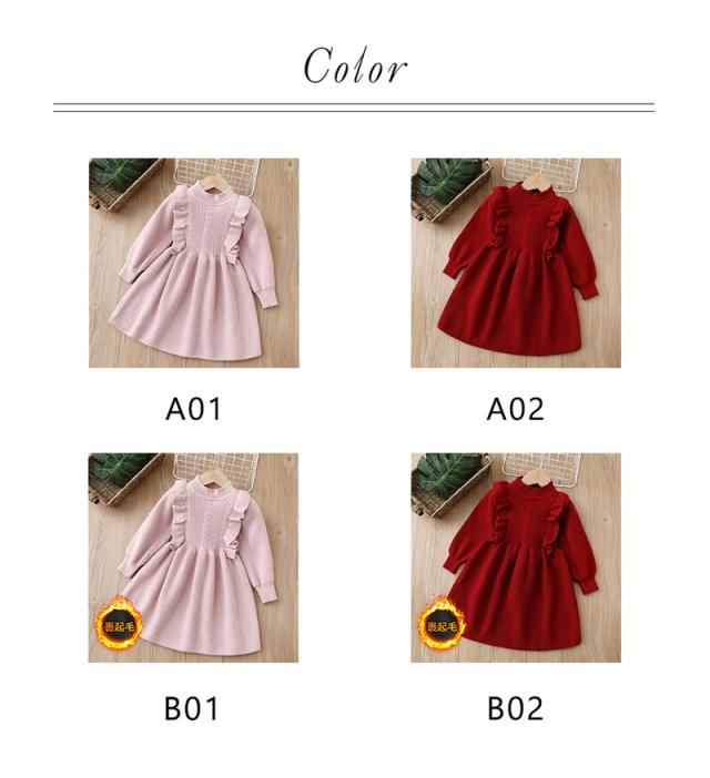 ワンピース 子供服 裏起毛 キッズ 長袖 ニット 秋冬ワンピース 送料無料 フリル フレア シンプル 韓国風 かわいい おしゃれ