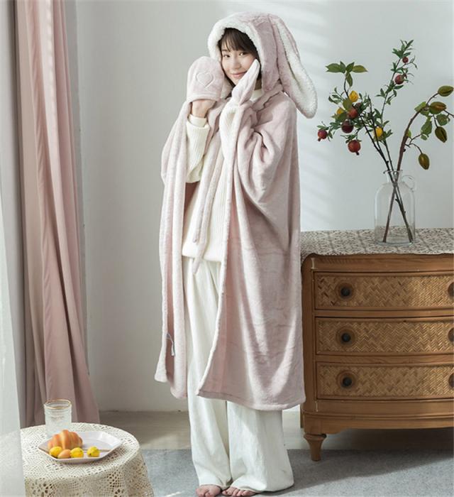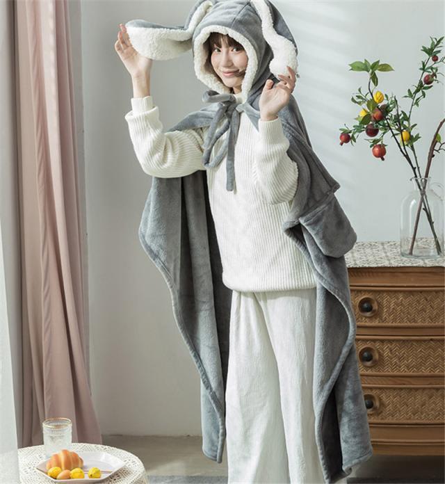 【水曜日まで!10%クーポン配布中】 着る毛布 レディース 着るブランケット 裏起毛 羽織 かわいい フード付き ボタン付き 前開き フランネル 暖かい ふわふわ もこもこ 厚手 ルームウェア 部屋着