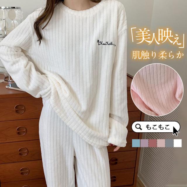 【水曜日まで!10%クーポン配布中】 パジャマ レディース 上下セット モコモコ 秋冬 長袖 ルームウェア 可愛い ロングパンツ セットアップ 暖かい 防寒 寝巻き 部屋着