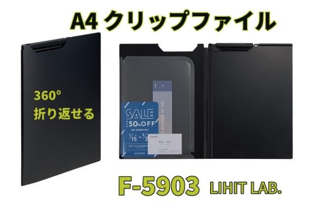 立ったまま筆記 リヒト クリップファイル A4 F5903 1430円 Noir×Noir 黒 ノアールノアール 会議 仕事 打ち合わせ メール便送料込