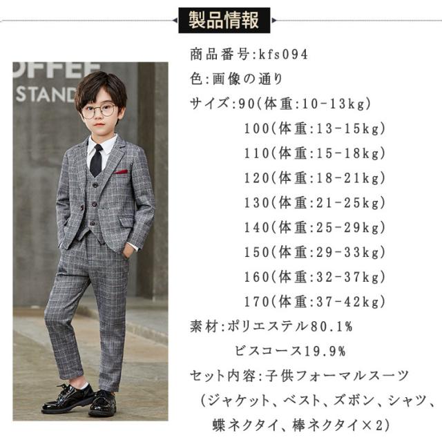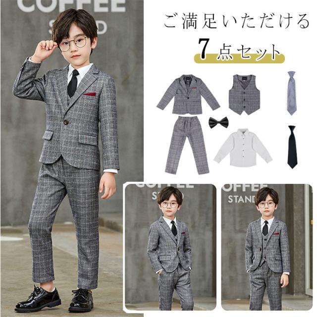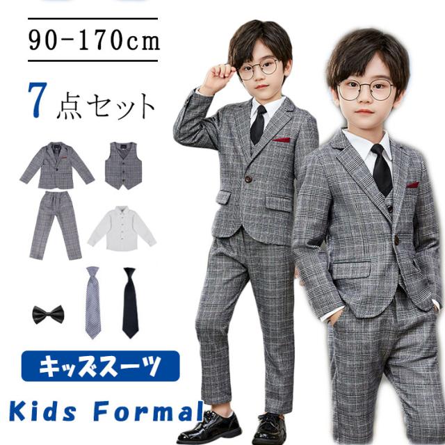 キッズフォーマル 女の子 子供服 フォーマル 7点セット シングル チェック柄 ジャケット ベスト ズボン シャツ 棒ネクタイ 子供スーツ 90 100 110 120 130 140 150 160 170 キッズ・ガールズフォーマルスーツ お正月